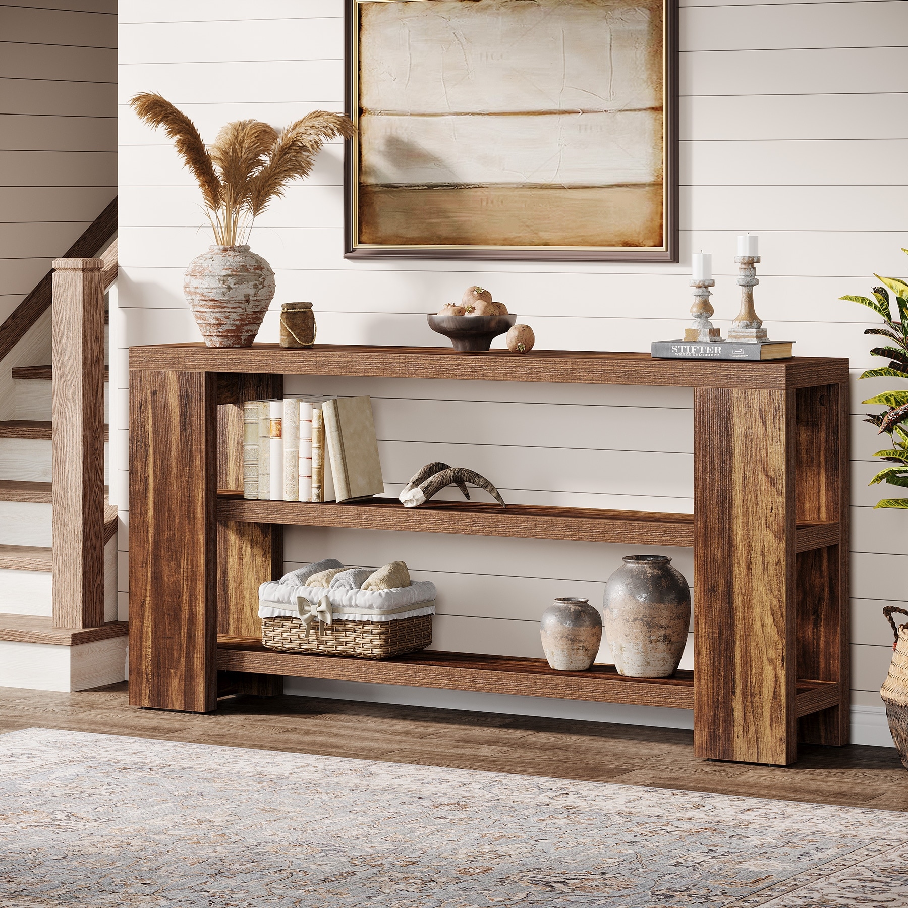 70.9-Inch Extra Long Console Table with Storage, 3-Tier Narrow Wooden Sofa Table
