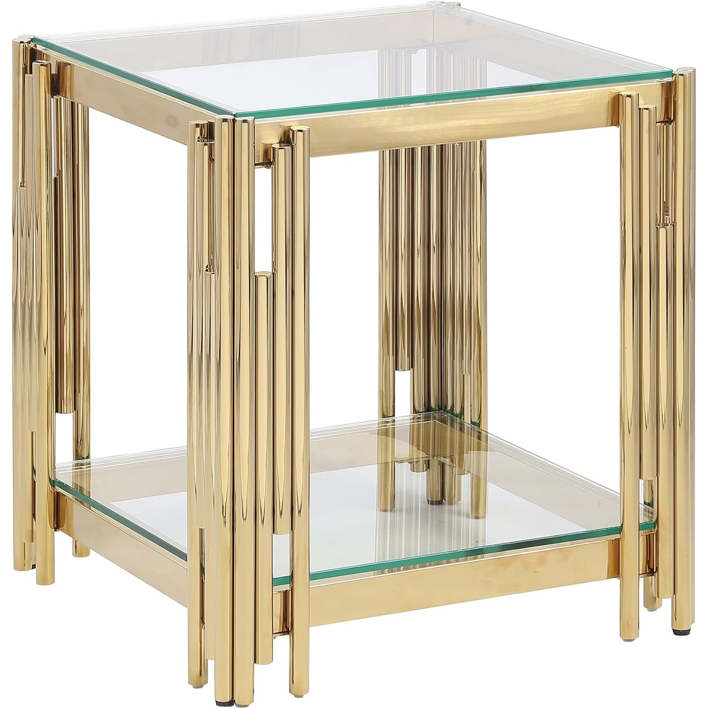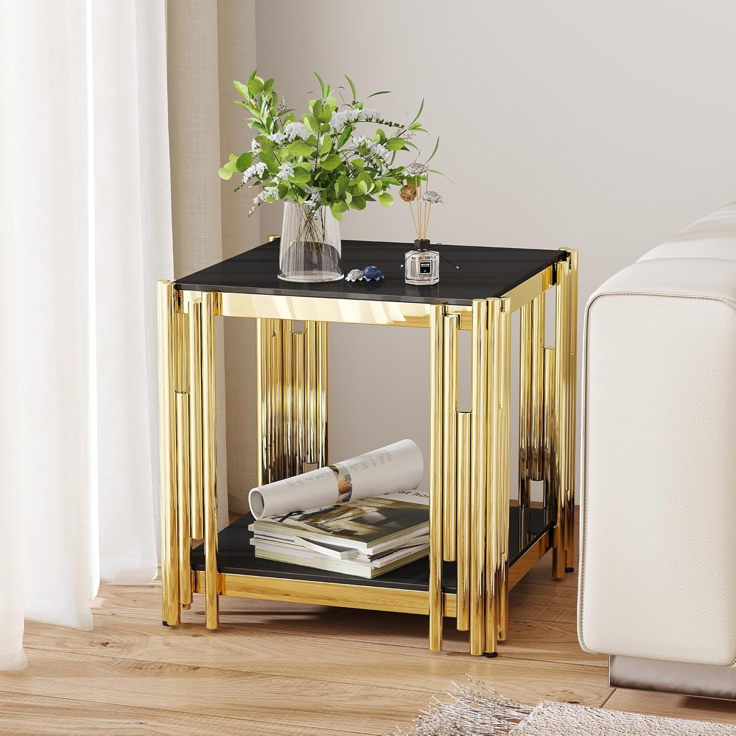 Contemporary Glass Side Table with Metal Frame and Tempered Glass Top for Living Room, Bedroom, or Office