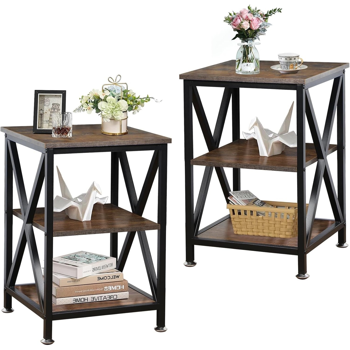 Set of 2 X-Shaped End Tables with Storage Shelf, 16x16x24 Inches, Farmhouse Wood Night Stands for Living Room or Bedroom