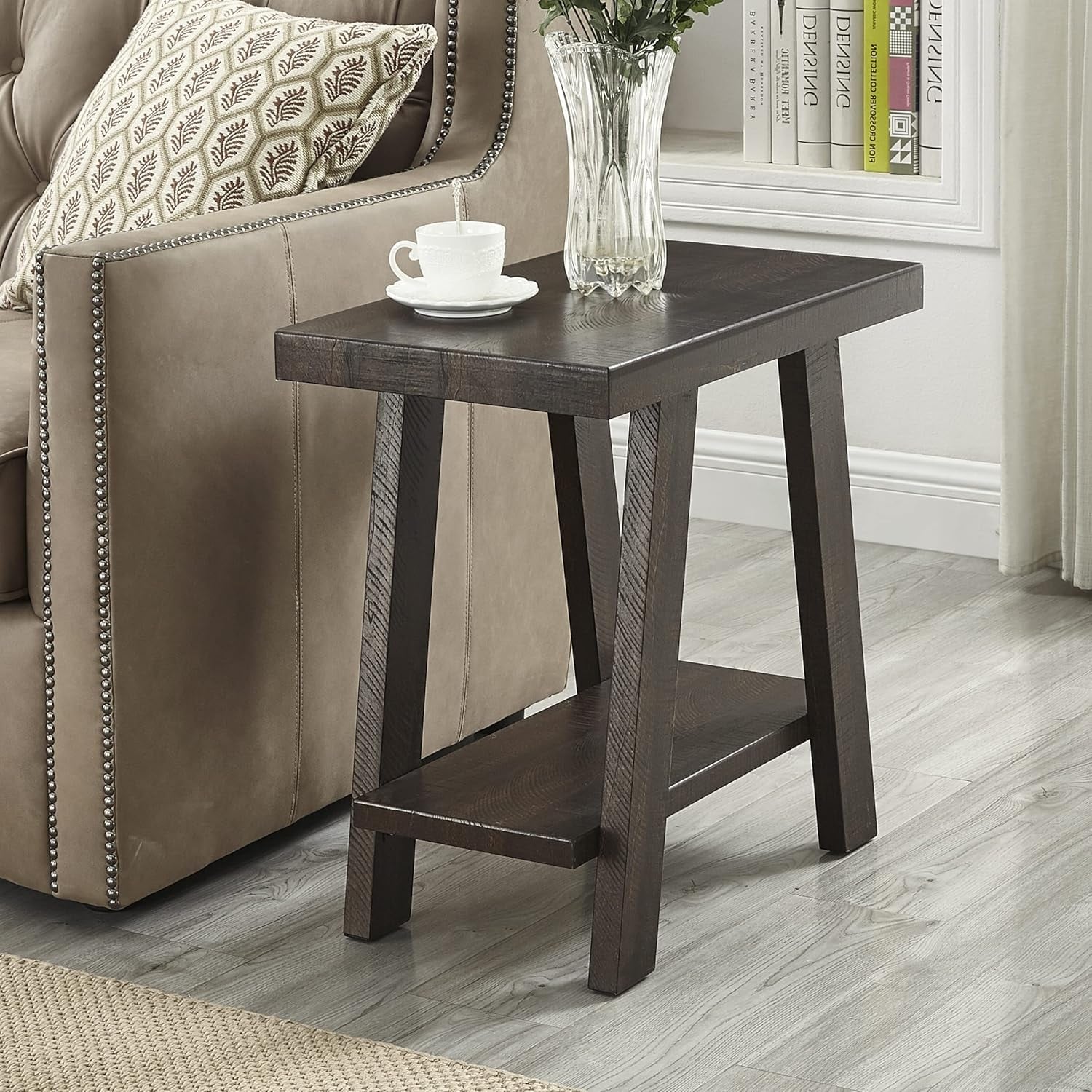 Contemporary Wood Side Table with Shelf, Espresso Finish
