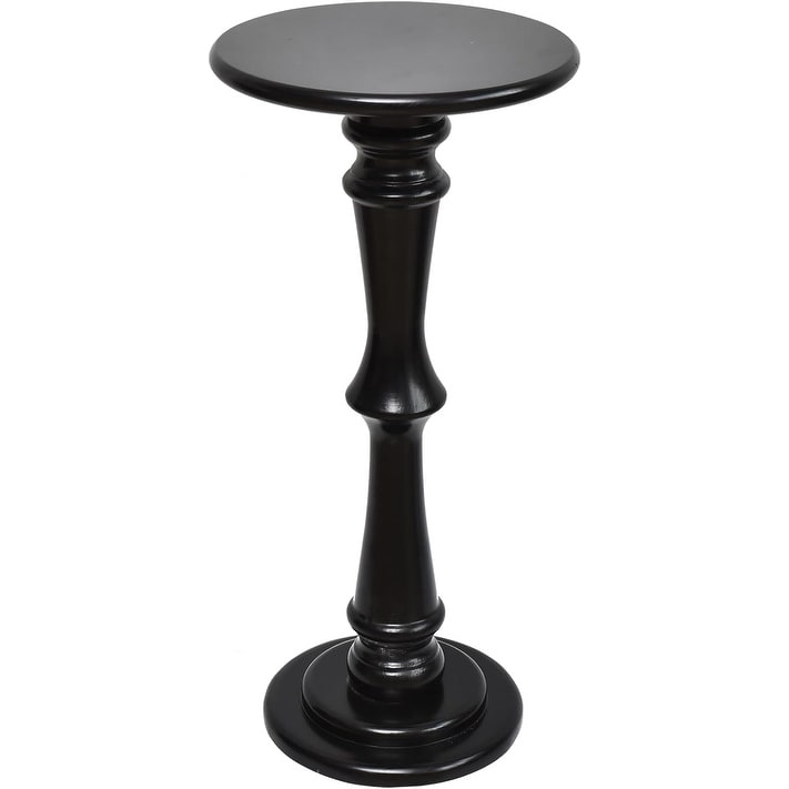 Modern Round Wooden Side Table for Living Room, Bedroom, or Office - Space-Saving Design (Black, 12inch x 25inch)