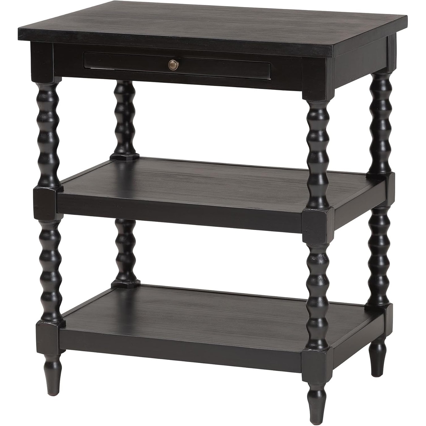 Black Retro-Modern End Table with Turned Legs and Open Shelves