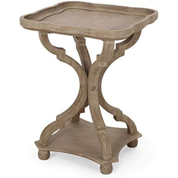Natural French Country Square Accent Table with Hourglass Base and Lipped Design