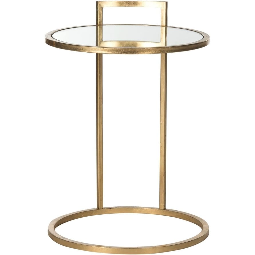 Round Gold Leaf End Table with Glass Top - Iron Base for Living Room