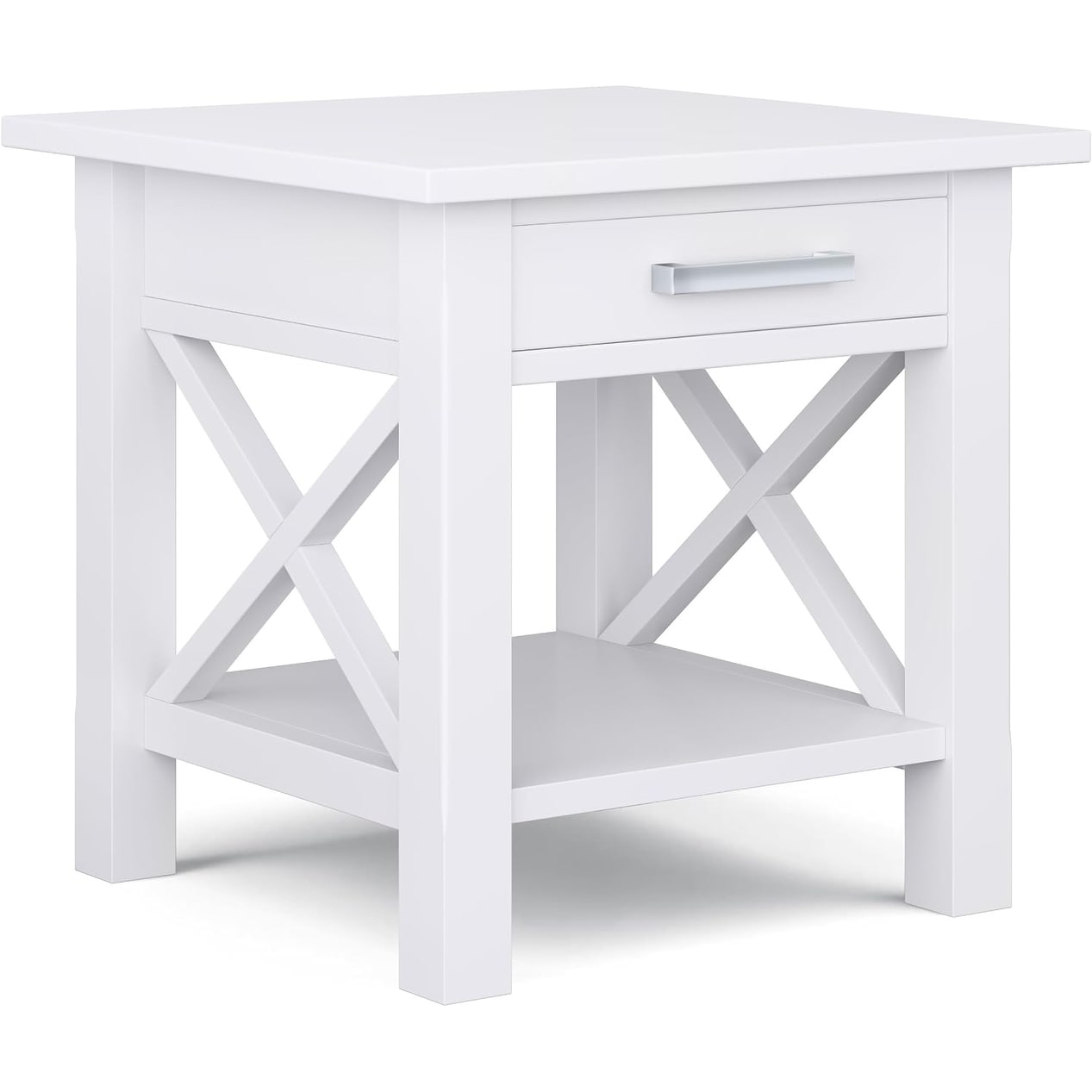21 Inch Wide Square Contemporary White End Table for Living Room and Bedroom
