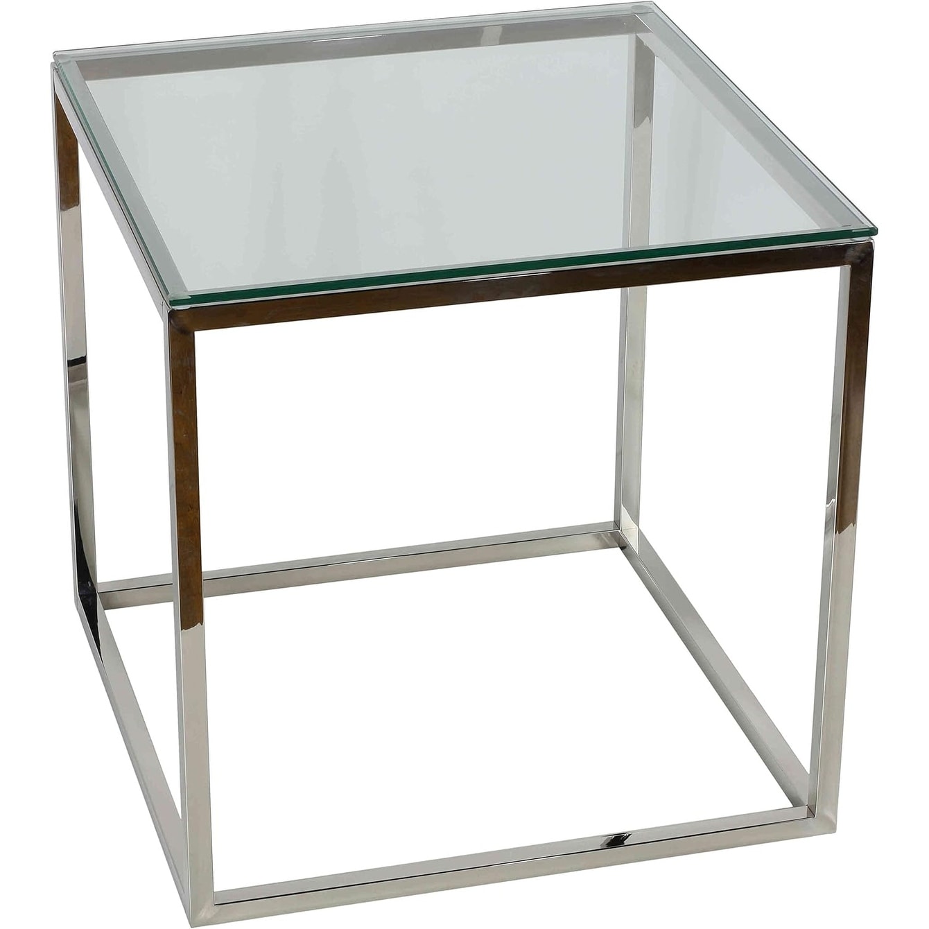 22inch Square End Table, Silver Stainless Steel with Glass Top