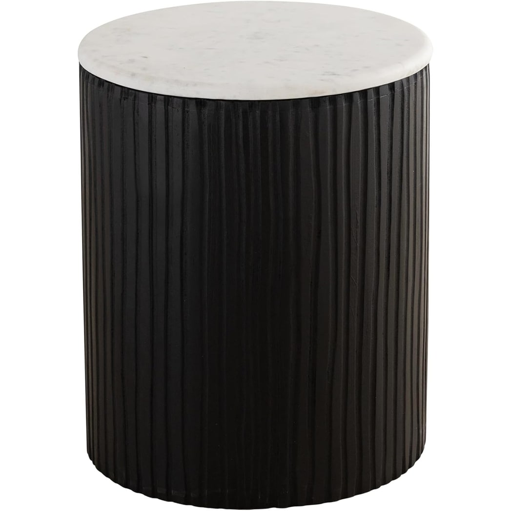 Round Marble Top Solid Wood Decorative Cylindrical Base Side/End Table for Living Room and Bedroom