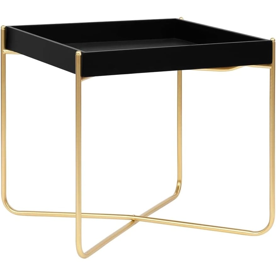 Modern MDF Side Table with Steel Frame, Compact Square Design in Black & Gold for Living Room