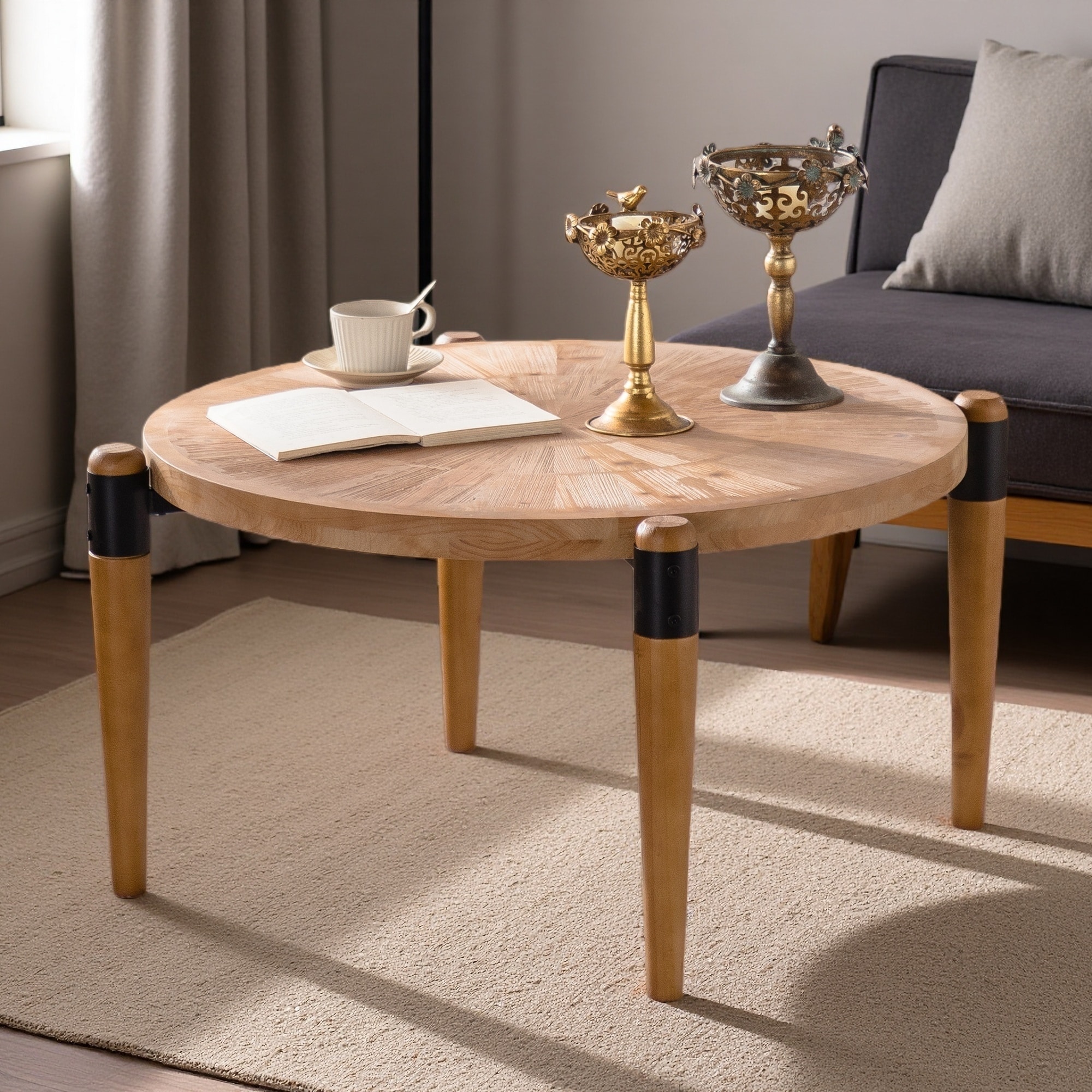 Modern Rustic Wood Round Coffee Table, Versatile Center Table for Living Room, Bedroom, or Office