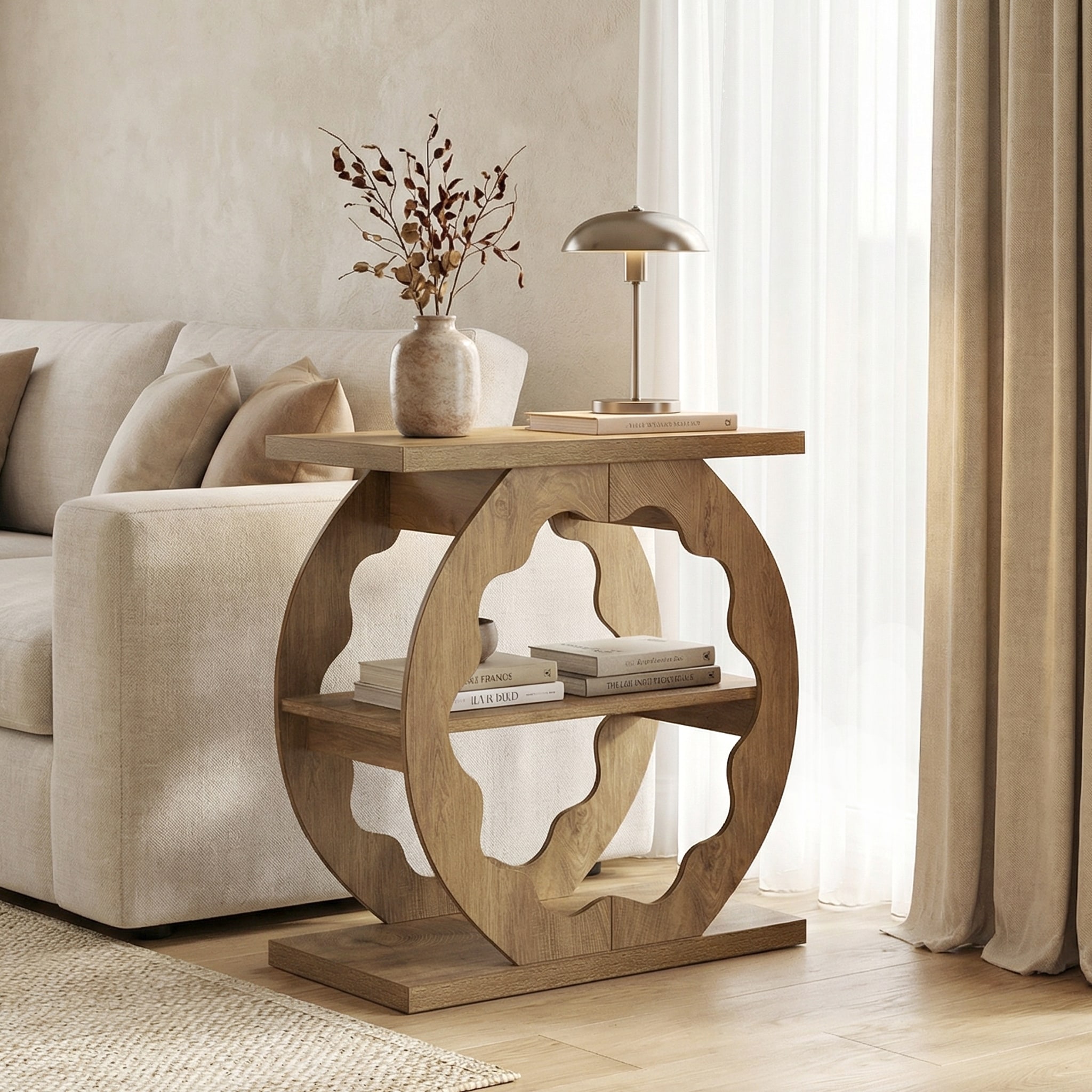 3 Tier End Side Table for Living Room, Bedroom, Elegant Curved Structure