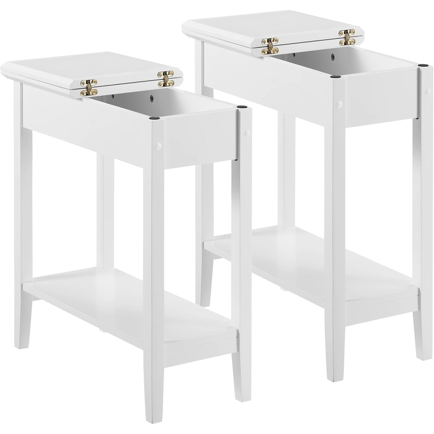 White Flip Top Chairside Table Set of 2 with Drawer and Bottom Shelf