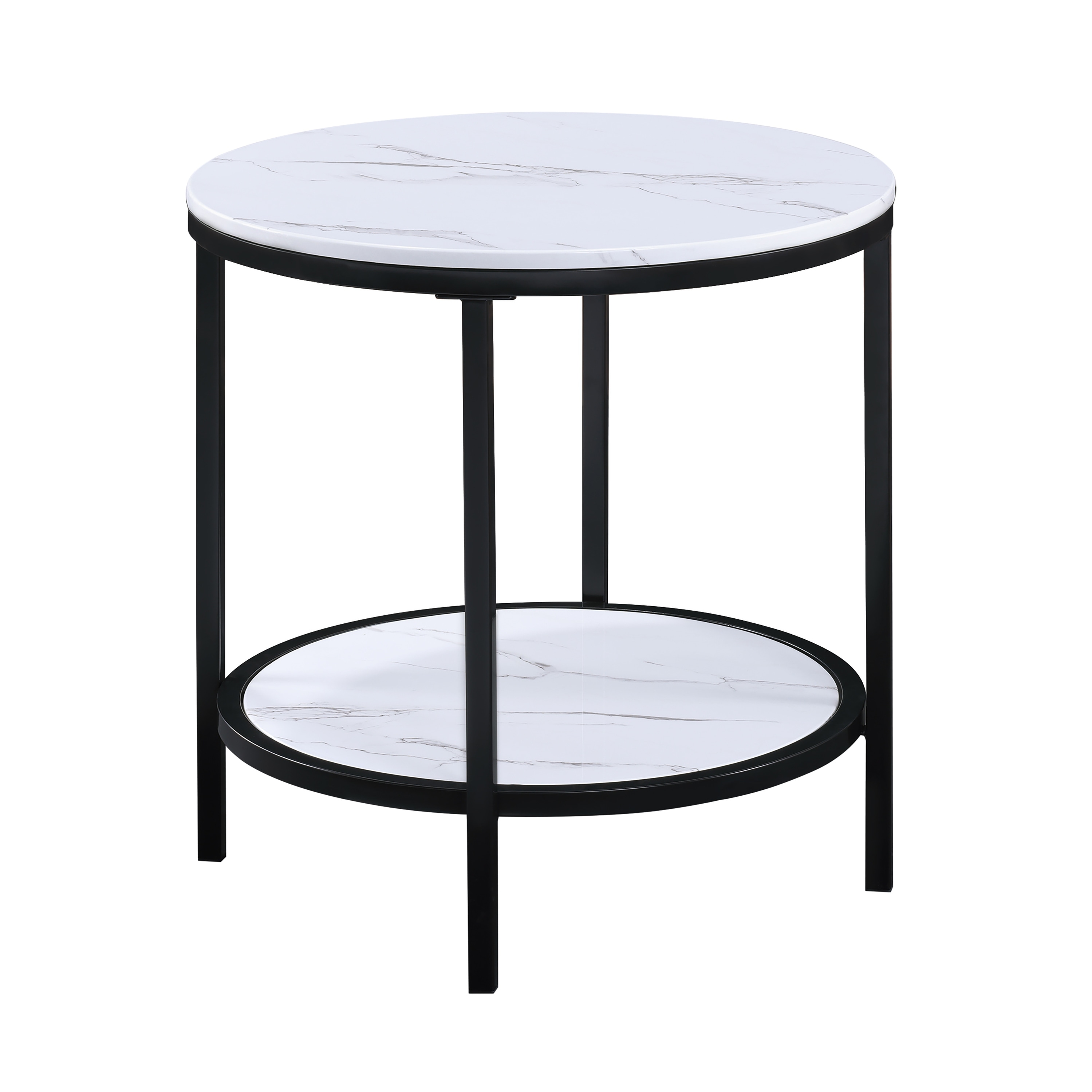 1pc Modern Round Faux Marble End Table with Storage Shelf Black Finish Living Room Wooden Furniture