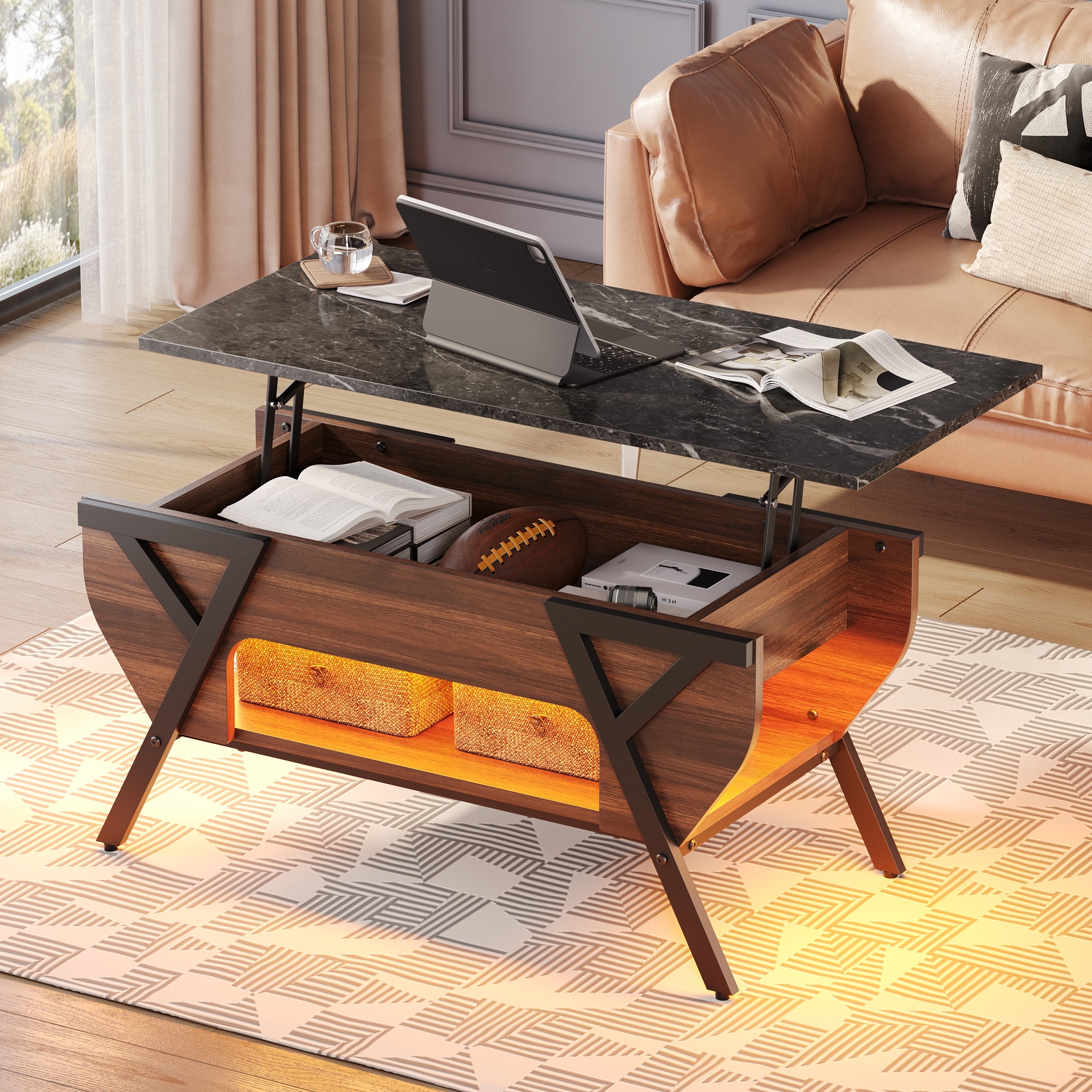 Lift-Top Coffee Table with LED Light and Storage Shelf
