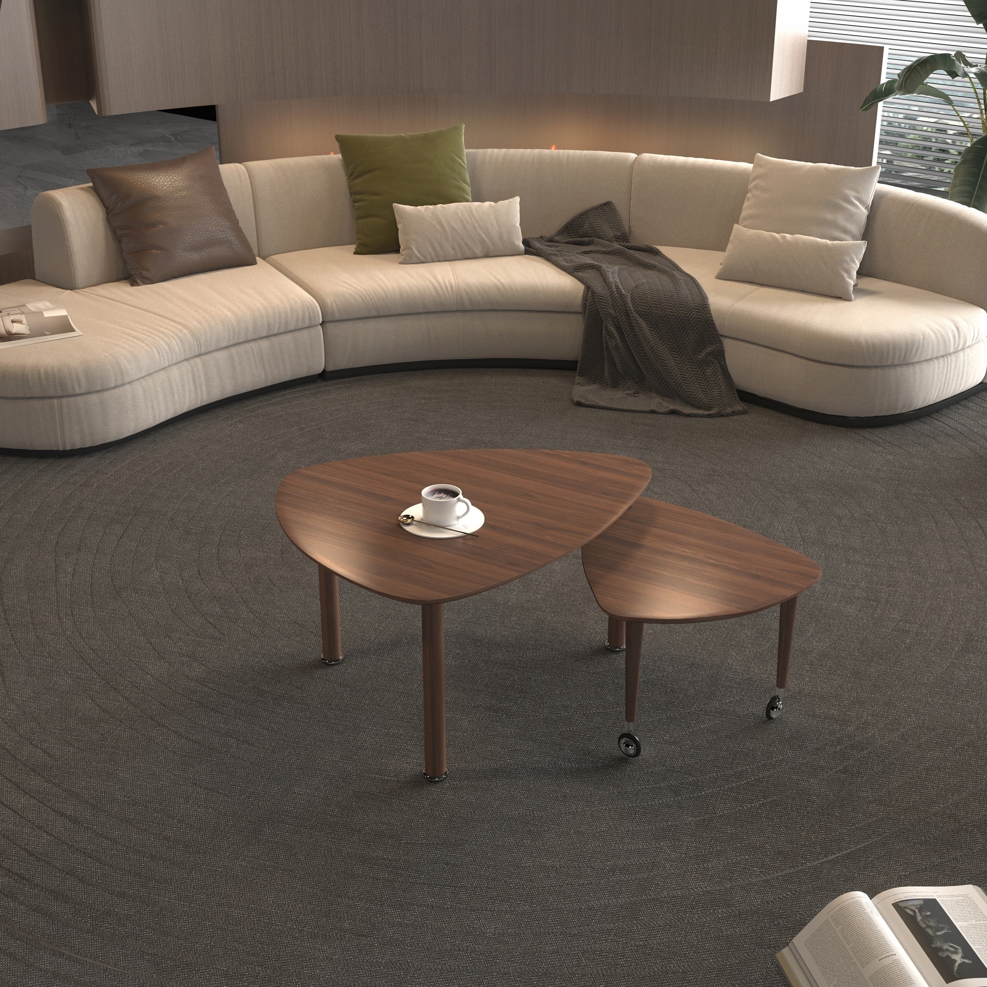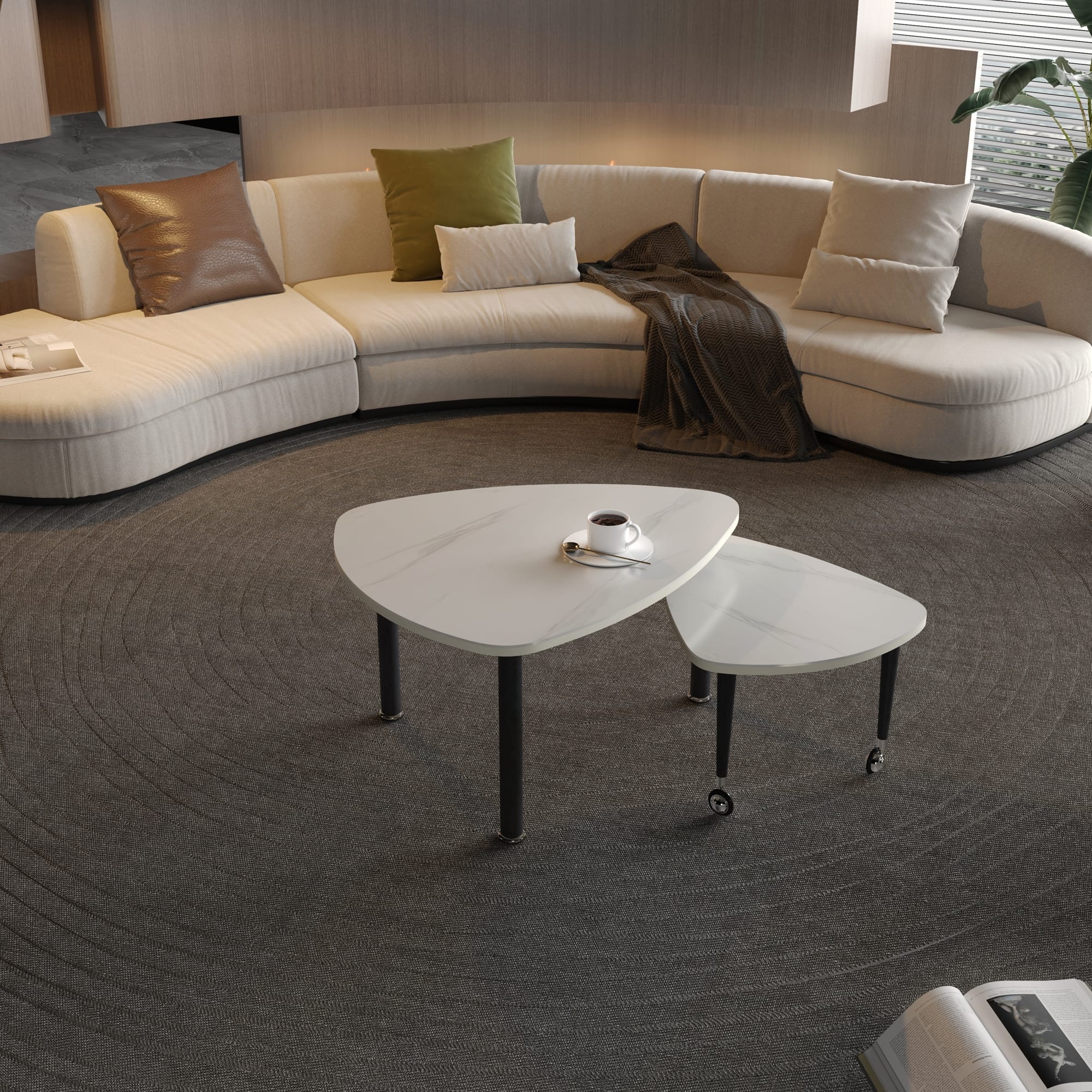 360 Degree Rotatable Sintered Stone Top Coffee Table with Solid Wood Legs for Modern Living and Space Efficiency