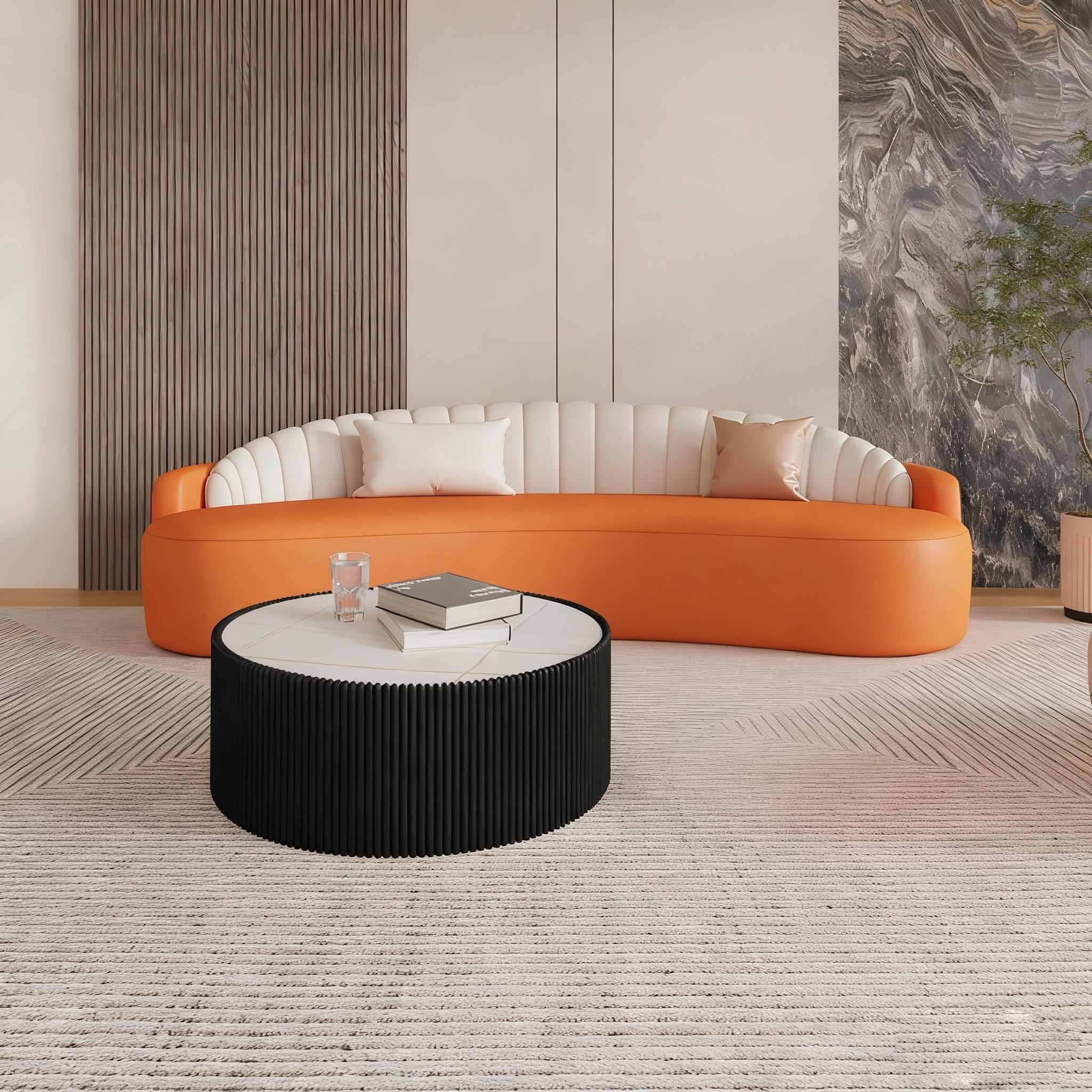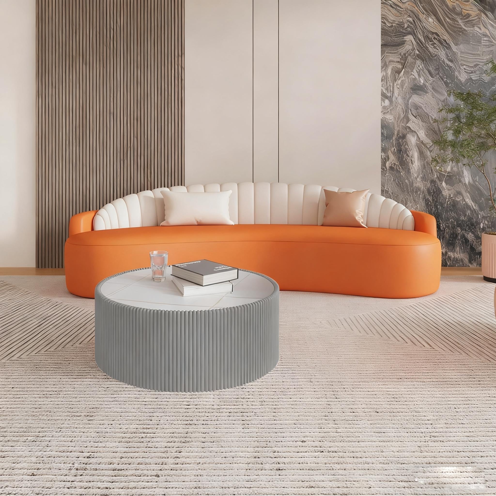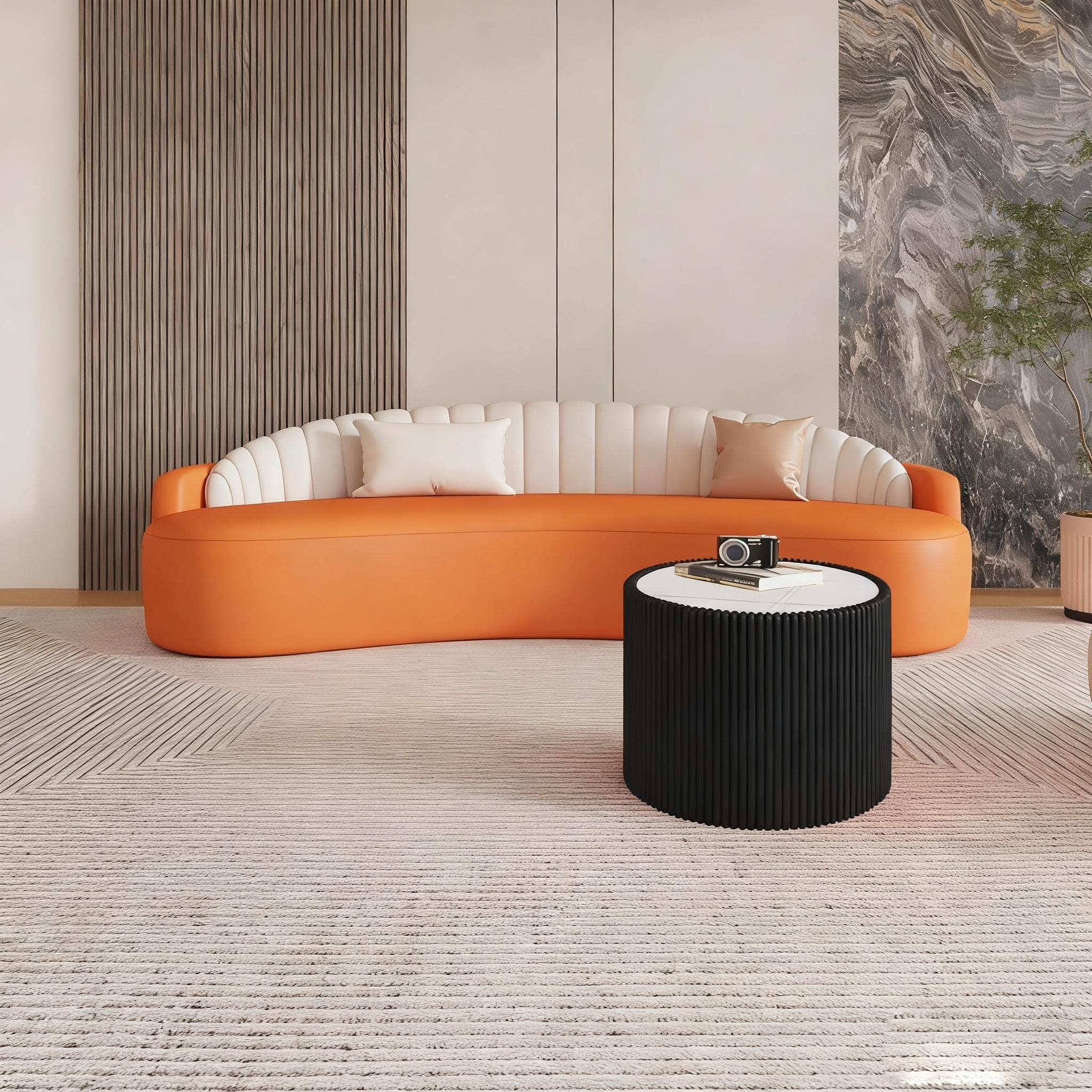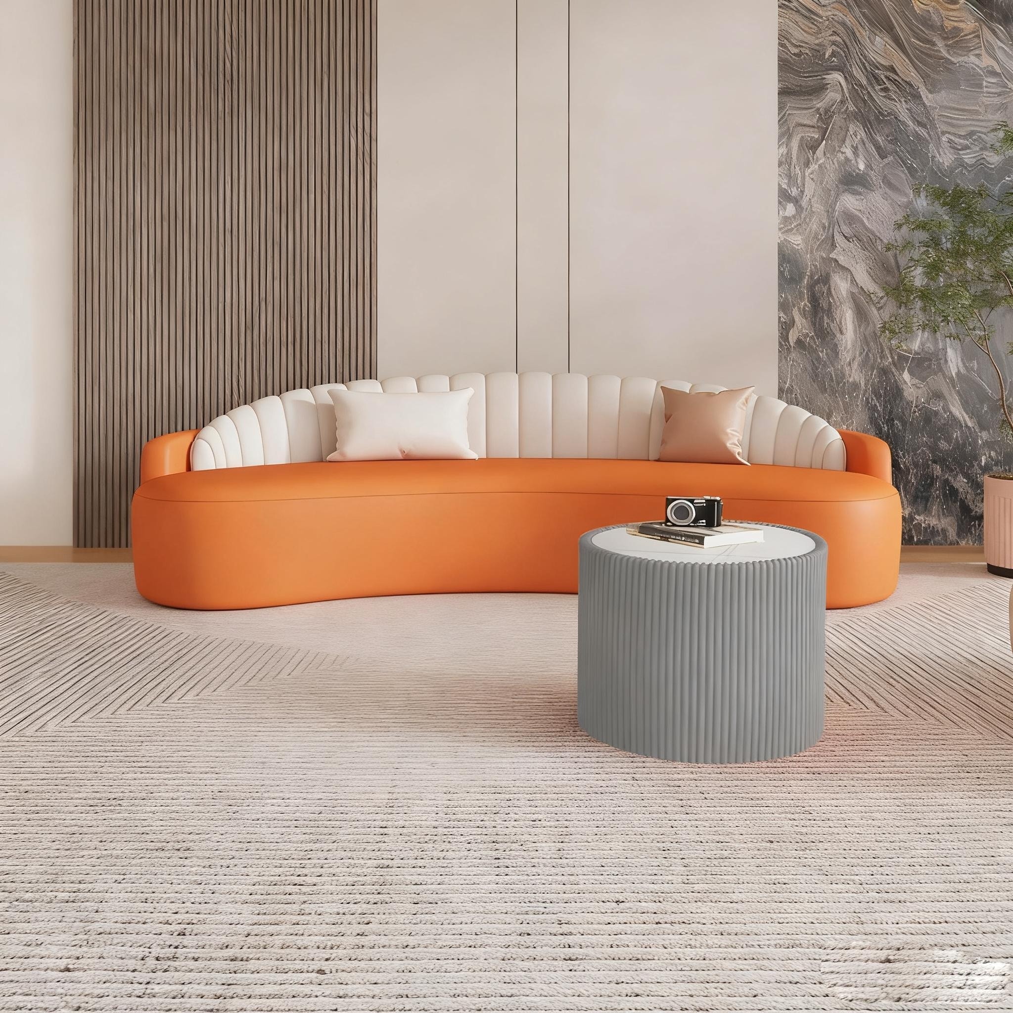 Light Marble Top Cylinder Shape Leather Table for Modern Living Room Furniture