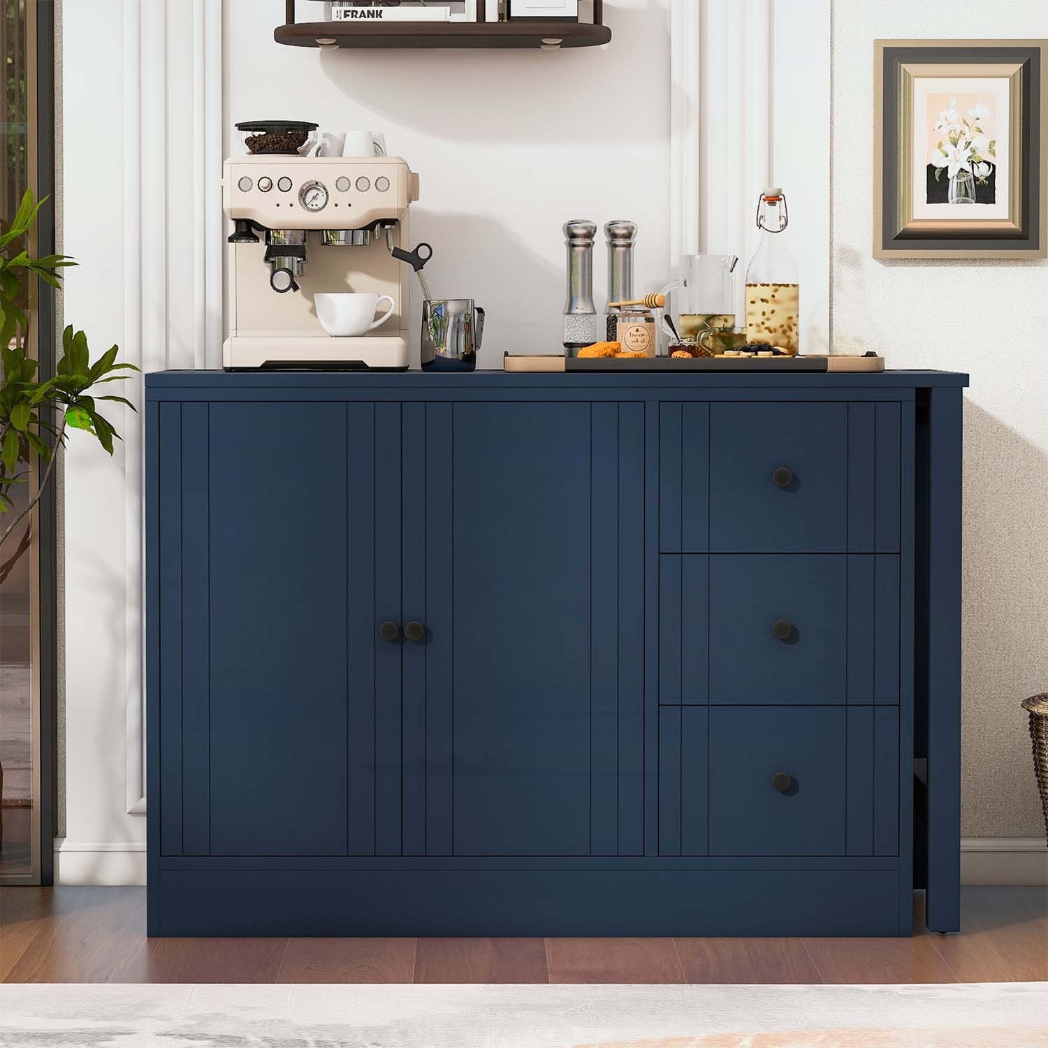 Wooden Storage Cabinet with Extendable Table,2 Doors and 3 Drawers,for Living Room,Study,Foyer,and Kitchen