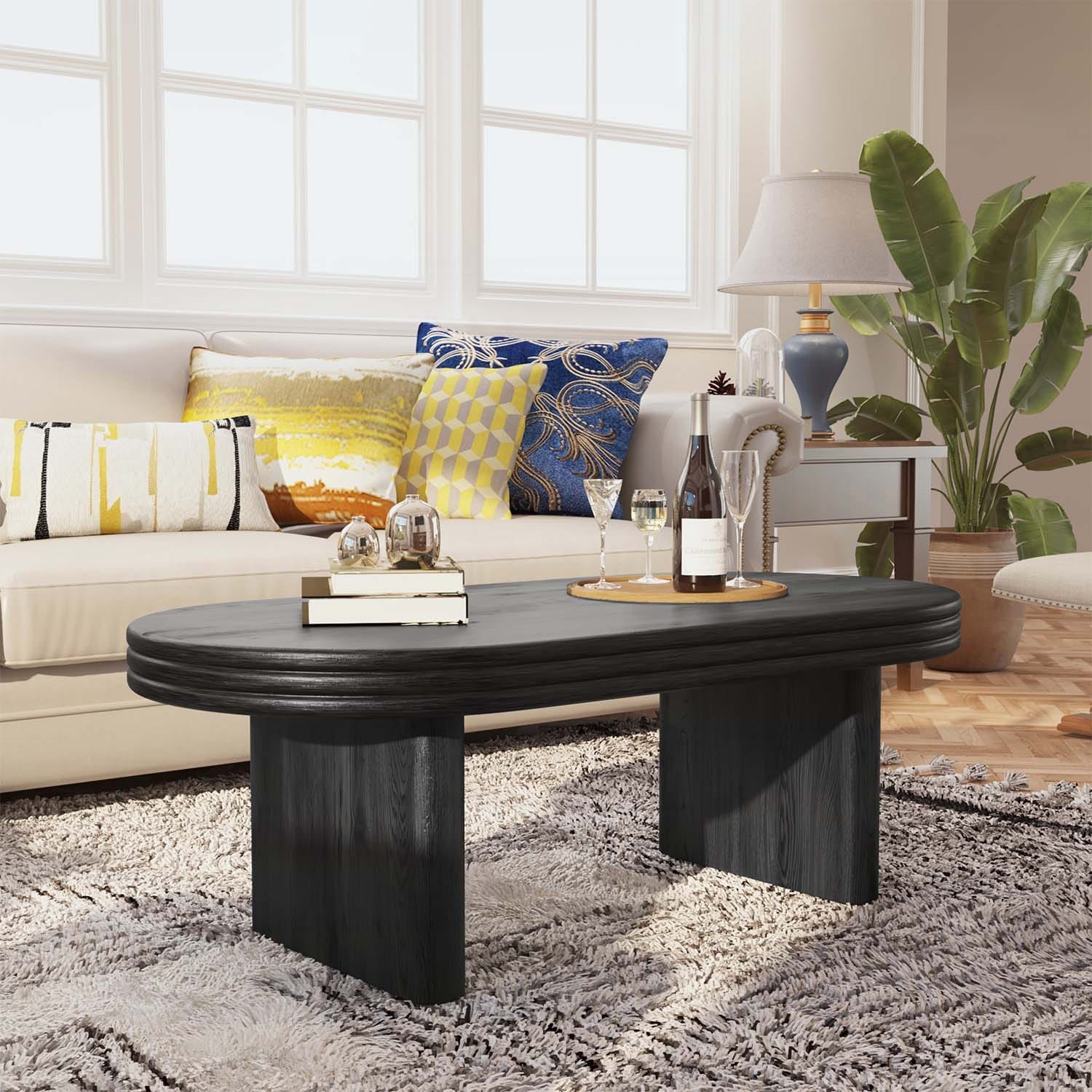 Drum Fluted Modern Round Coffee Table, Mid Century Circle Center Coffee Tables with Sturdy Pedestal