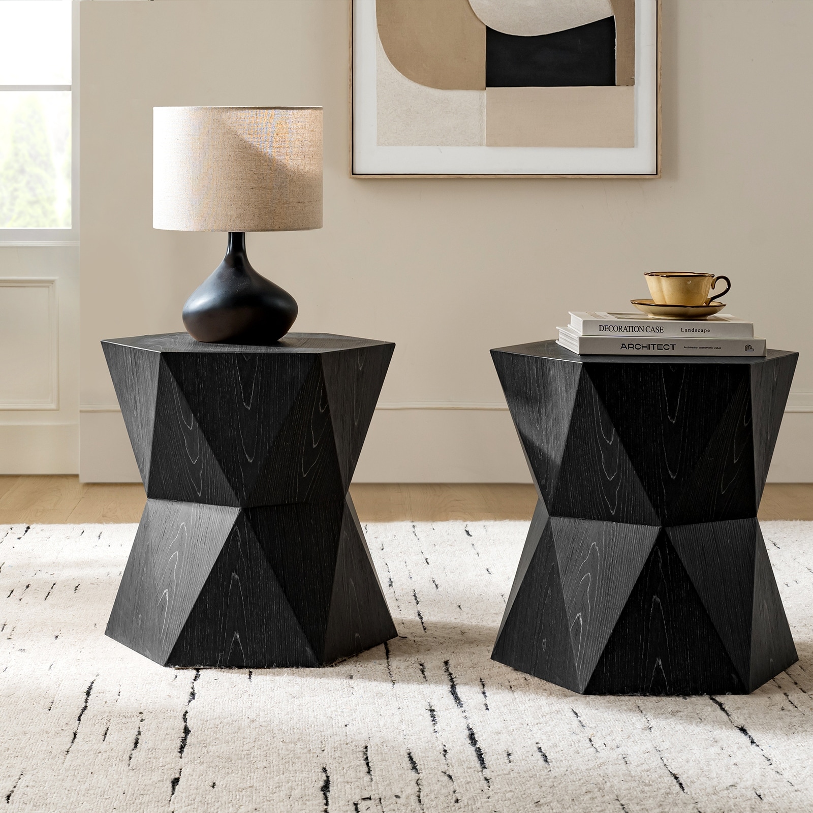 Fiora Modern Full Assembly Octagona End Table with Sculptural Geometric Base Set of 2 by HULALA HOME