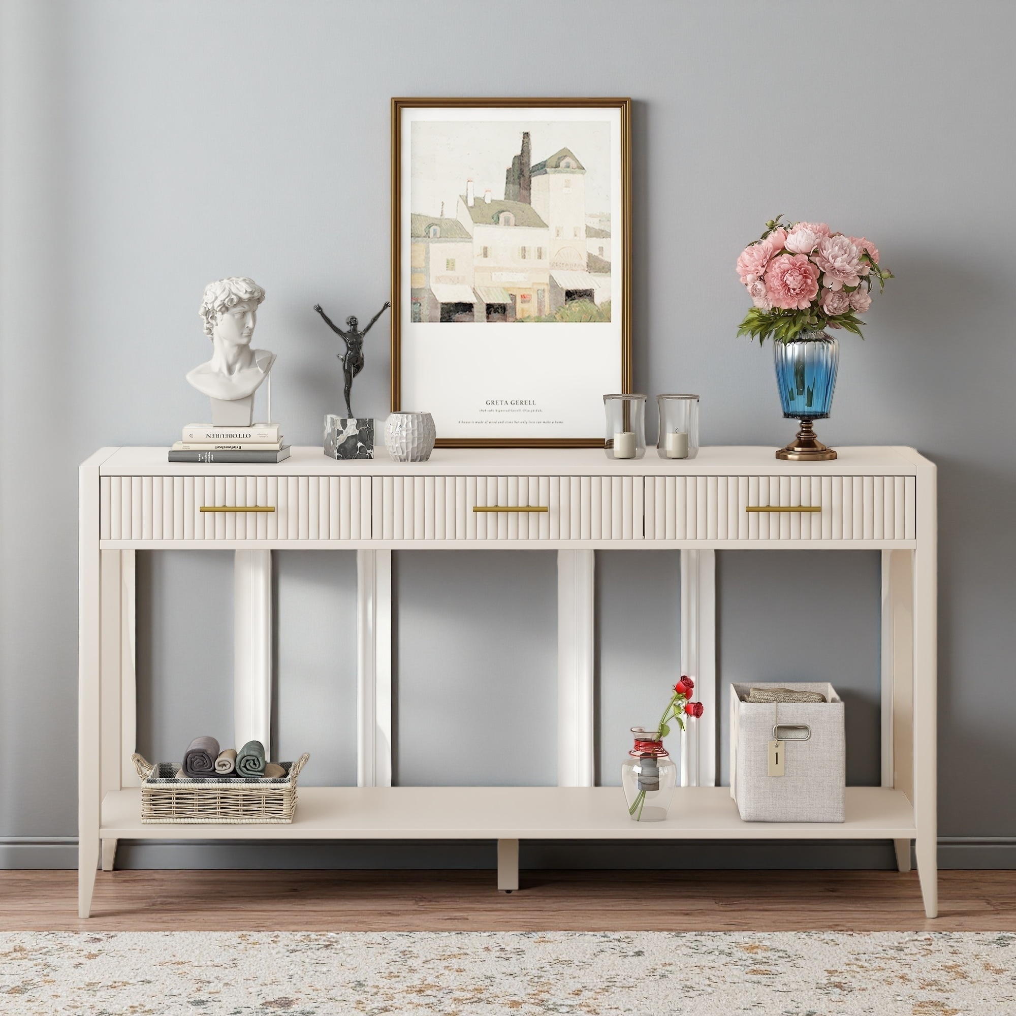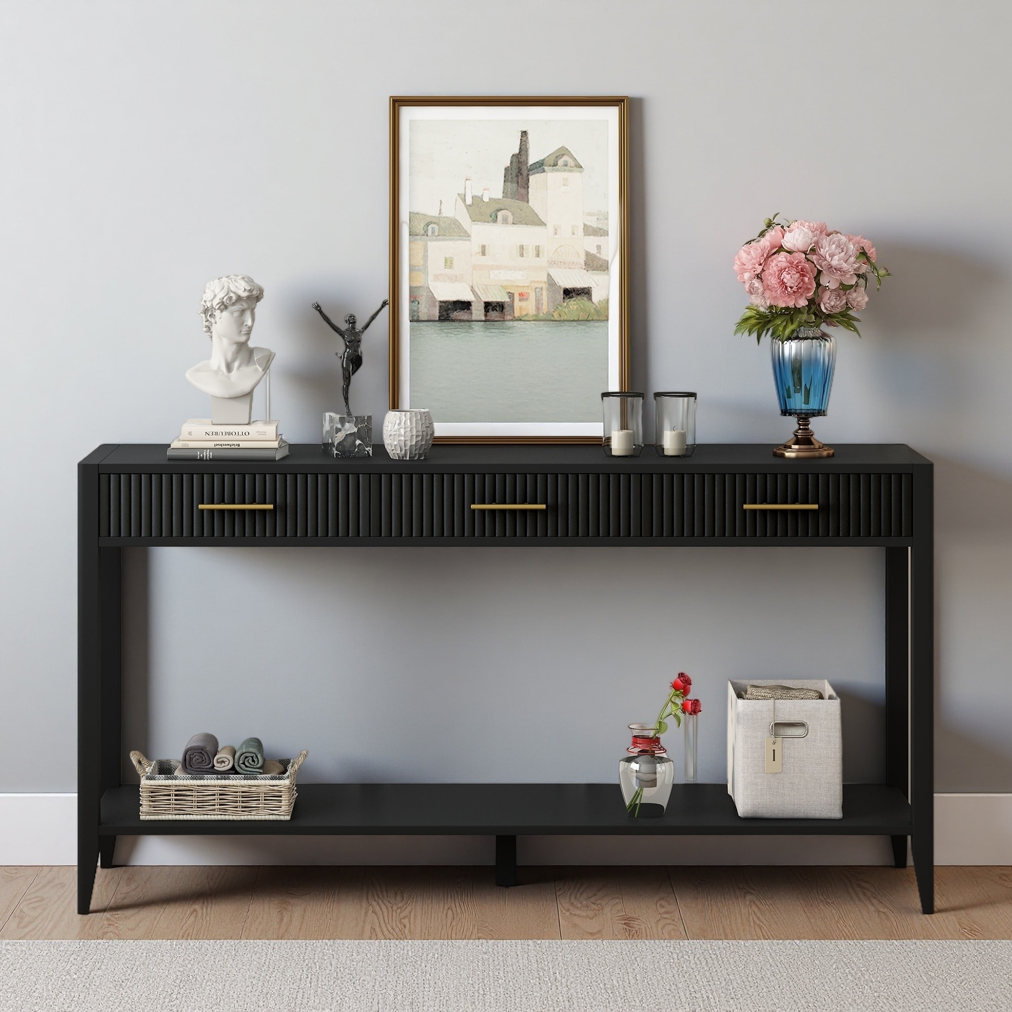 60" MDF Console Table with 3 Drawers & Wavy Design