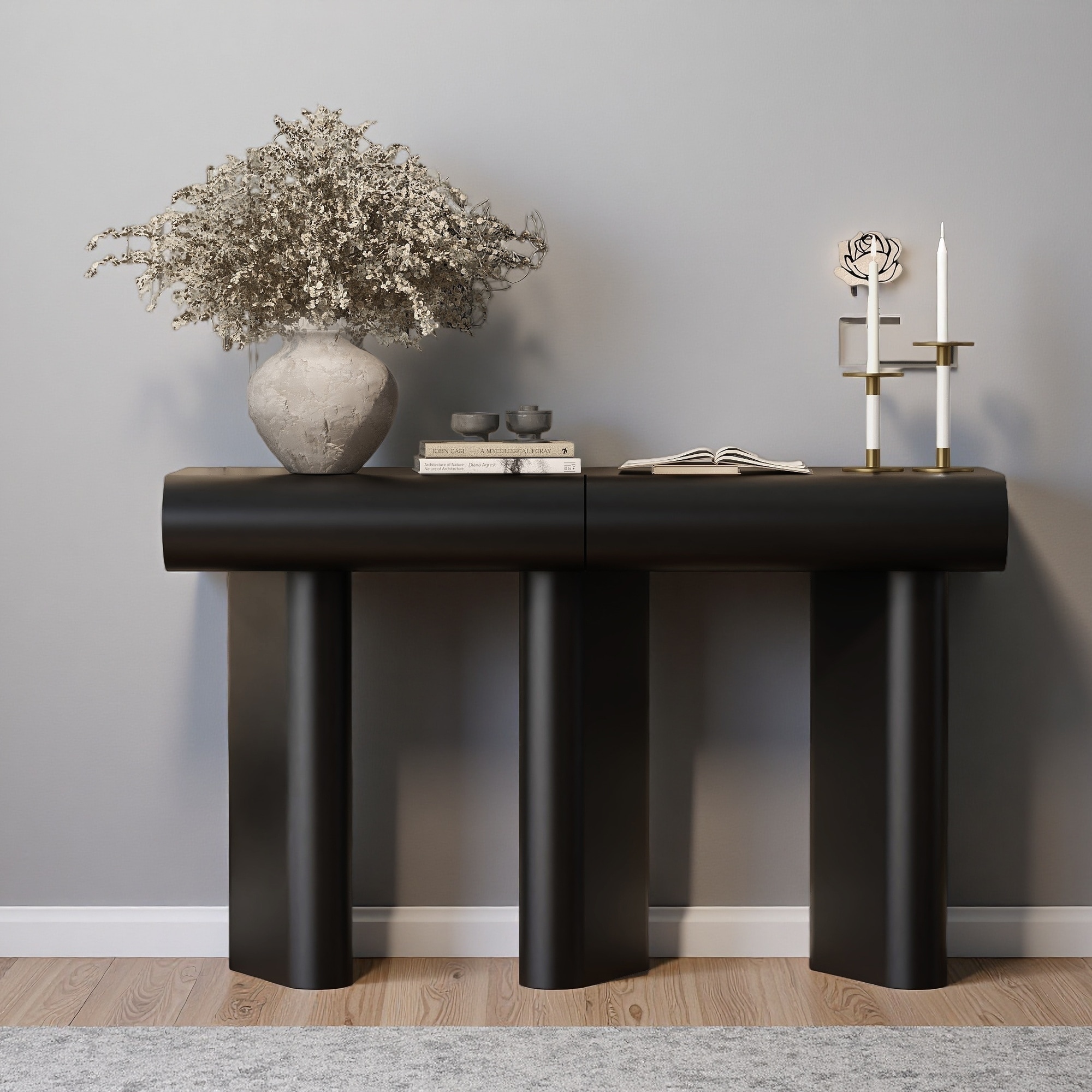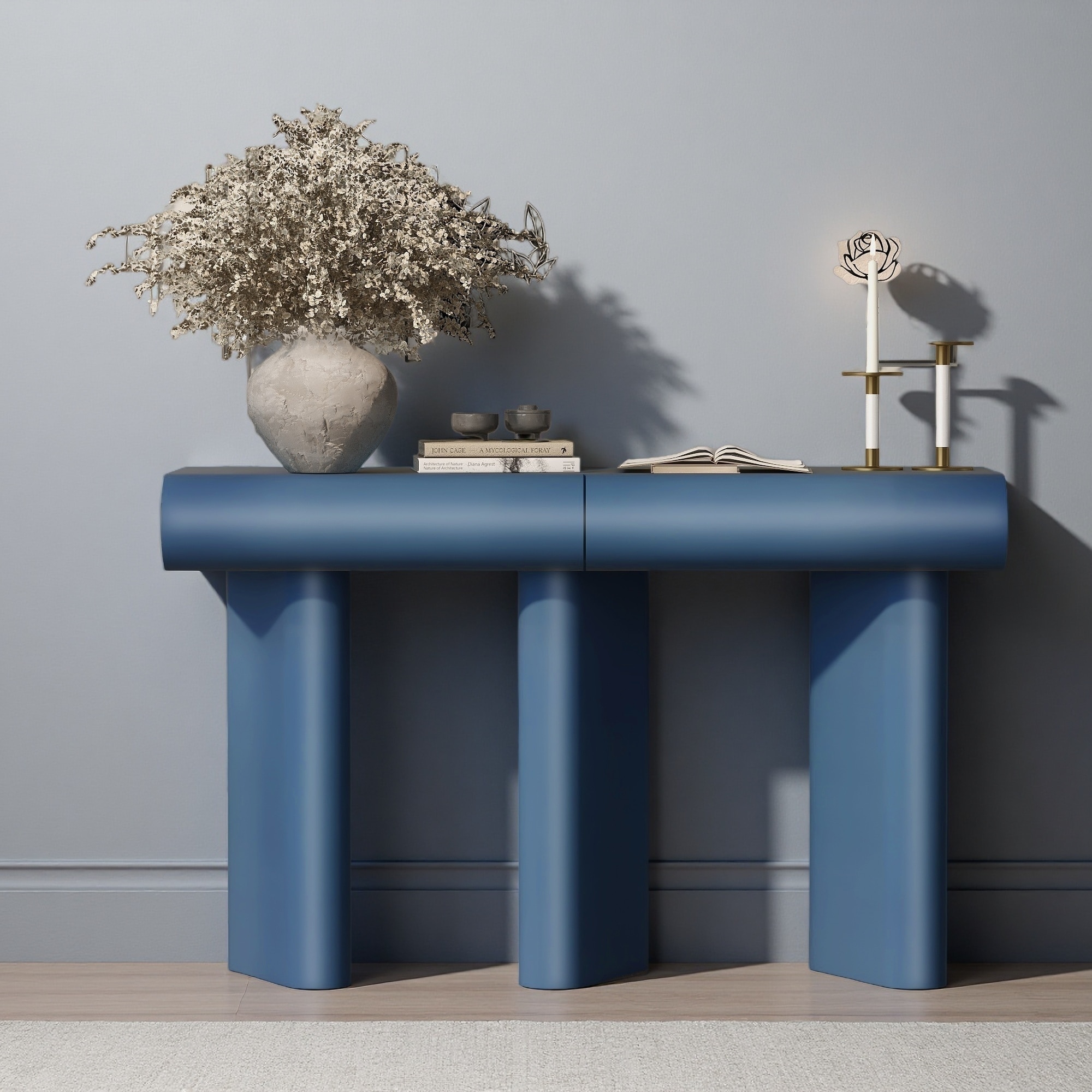 47.6" Painted Console Table with 2 Curved Drawers & Glossy Finish