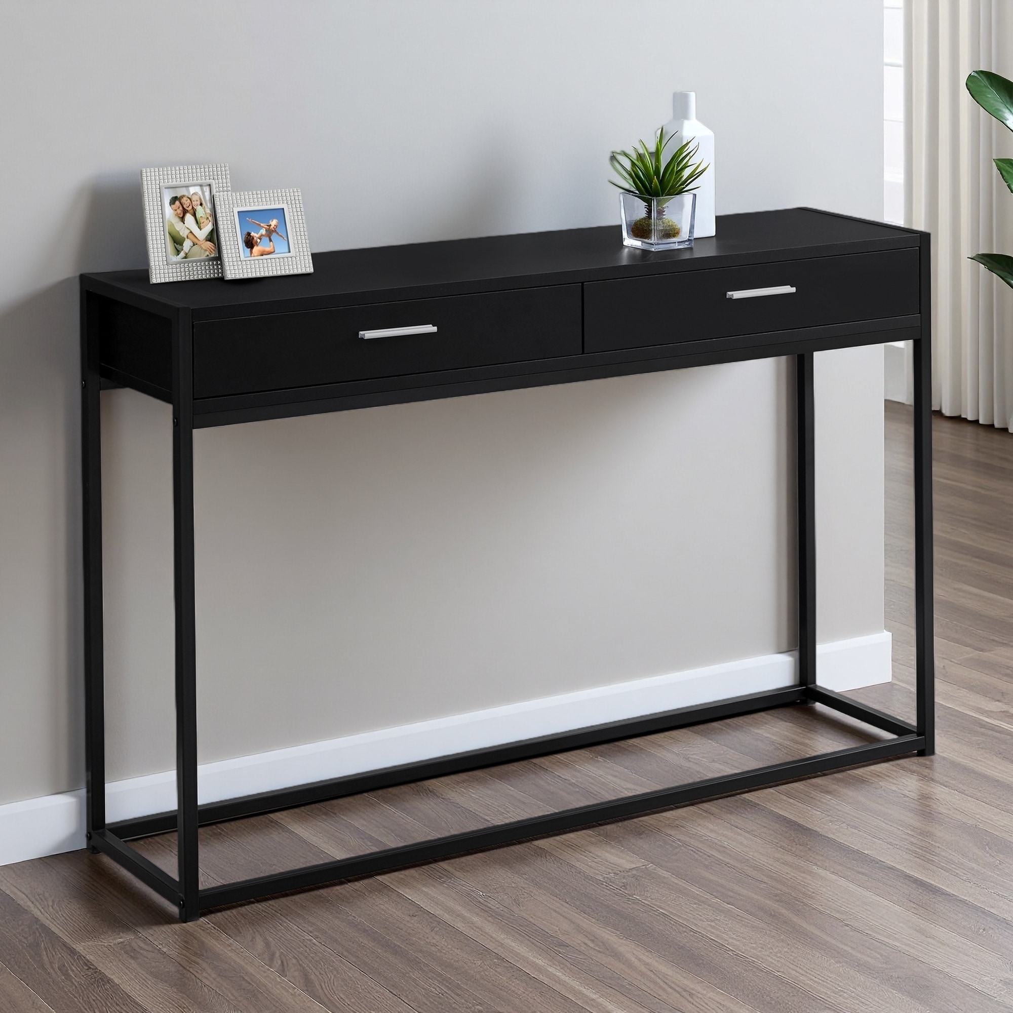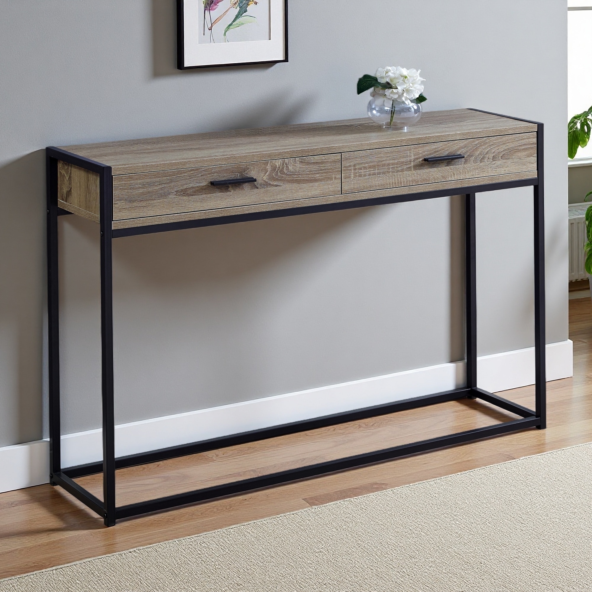 48" Laminate Console Table with 2 Drawers & Metal Legs