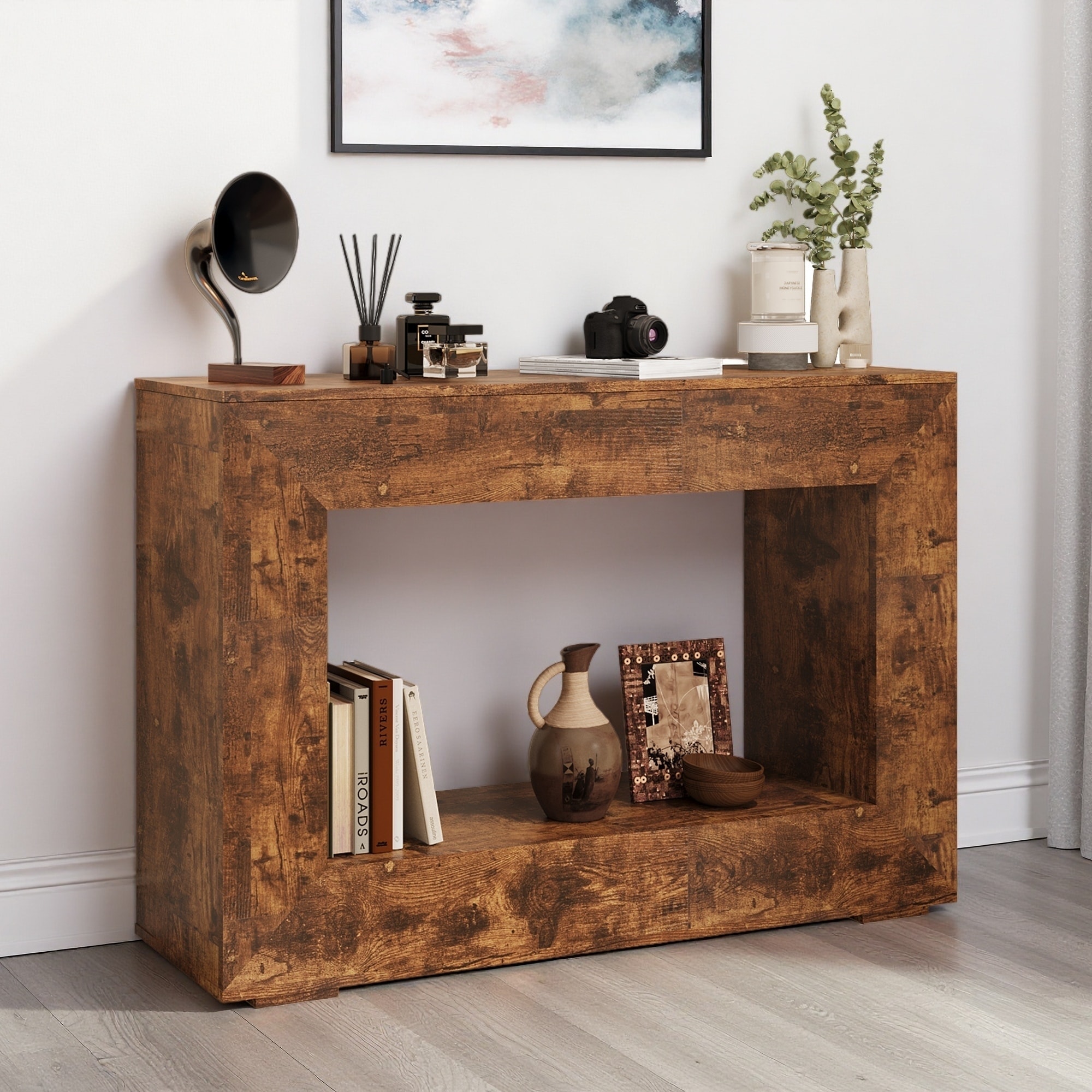 48" Console Table with Wine Bottle Storage & Storage Drawers - Rustic Finish