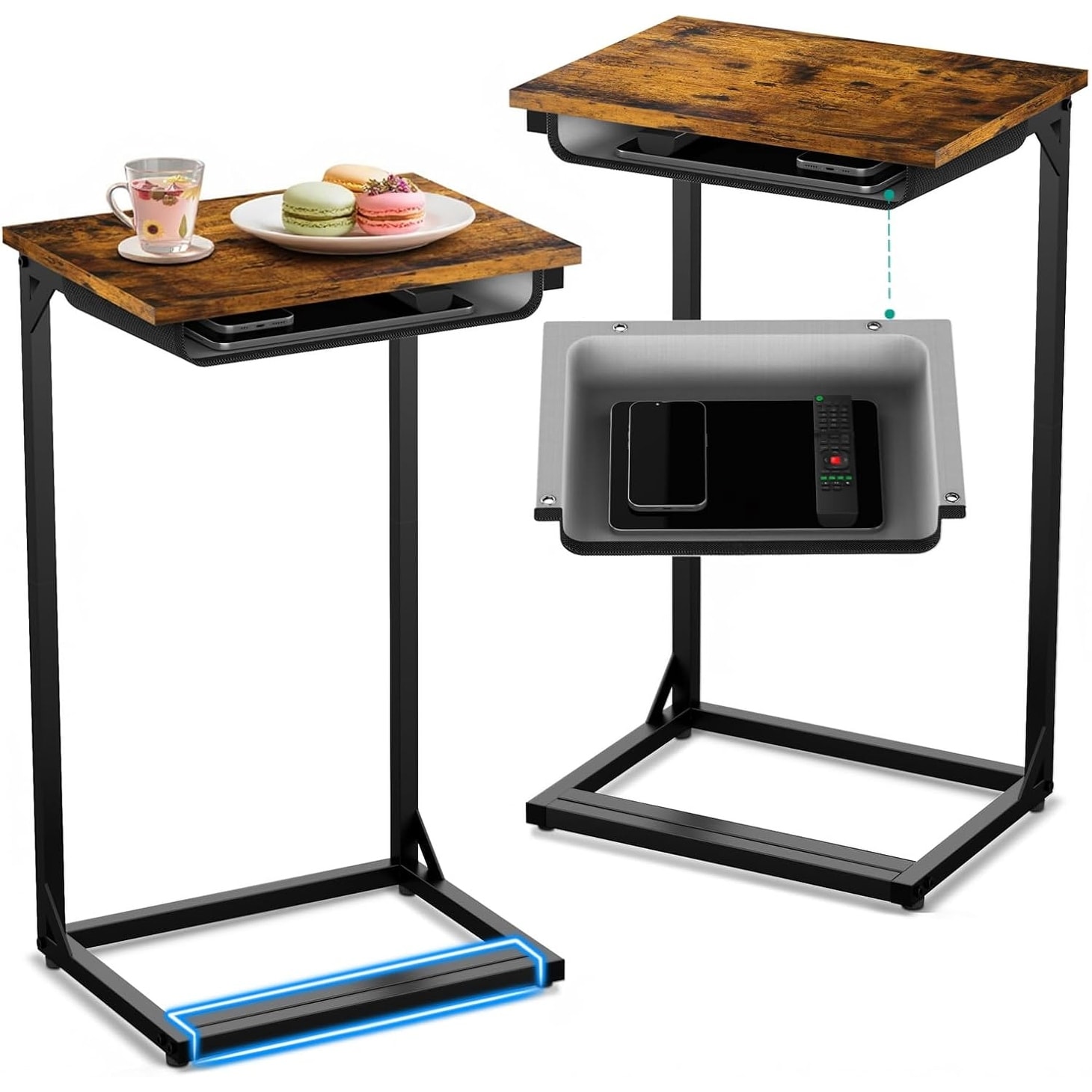 Compact Dual-Layer C-Shaped End Table Set with Storage, Adjustable Feet, and Mobile Design for Living Room or RV
