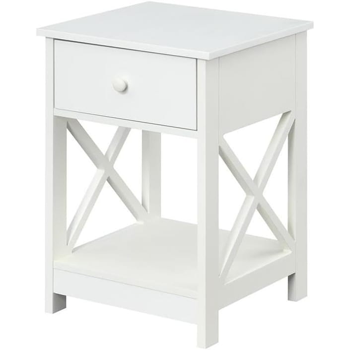 White 1-Drawer End Table with Shelf, Transitional Contemporary Style