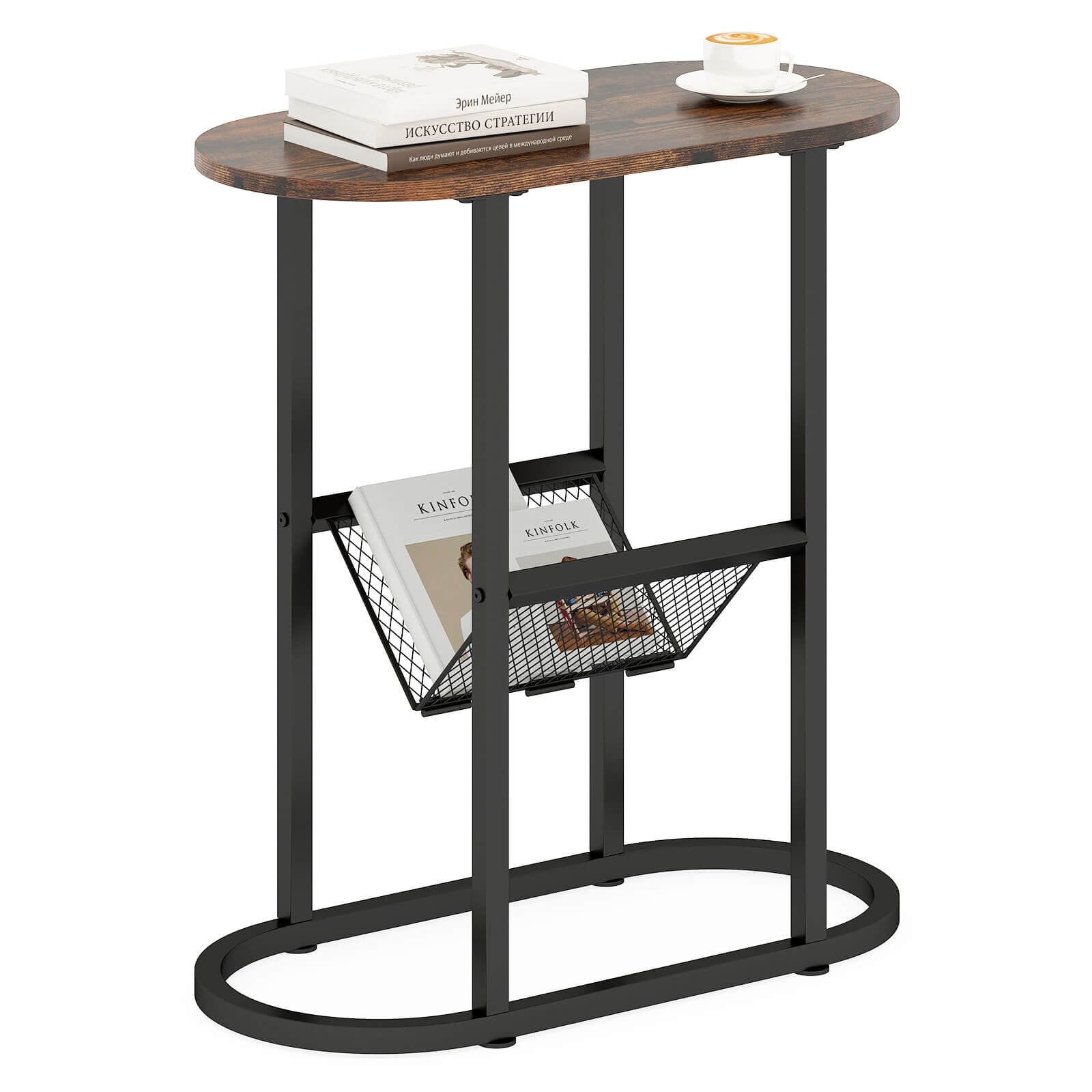 Costway 2-tier Side Table Oval Narrow End Table Nightstand Bedside - 23'' x 11'' x 25.5''
