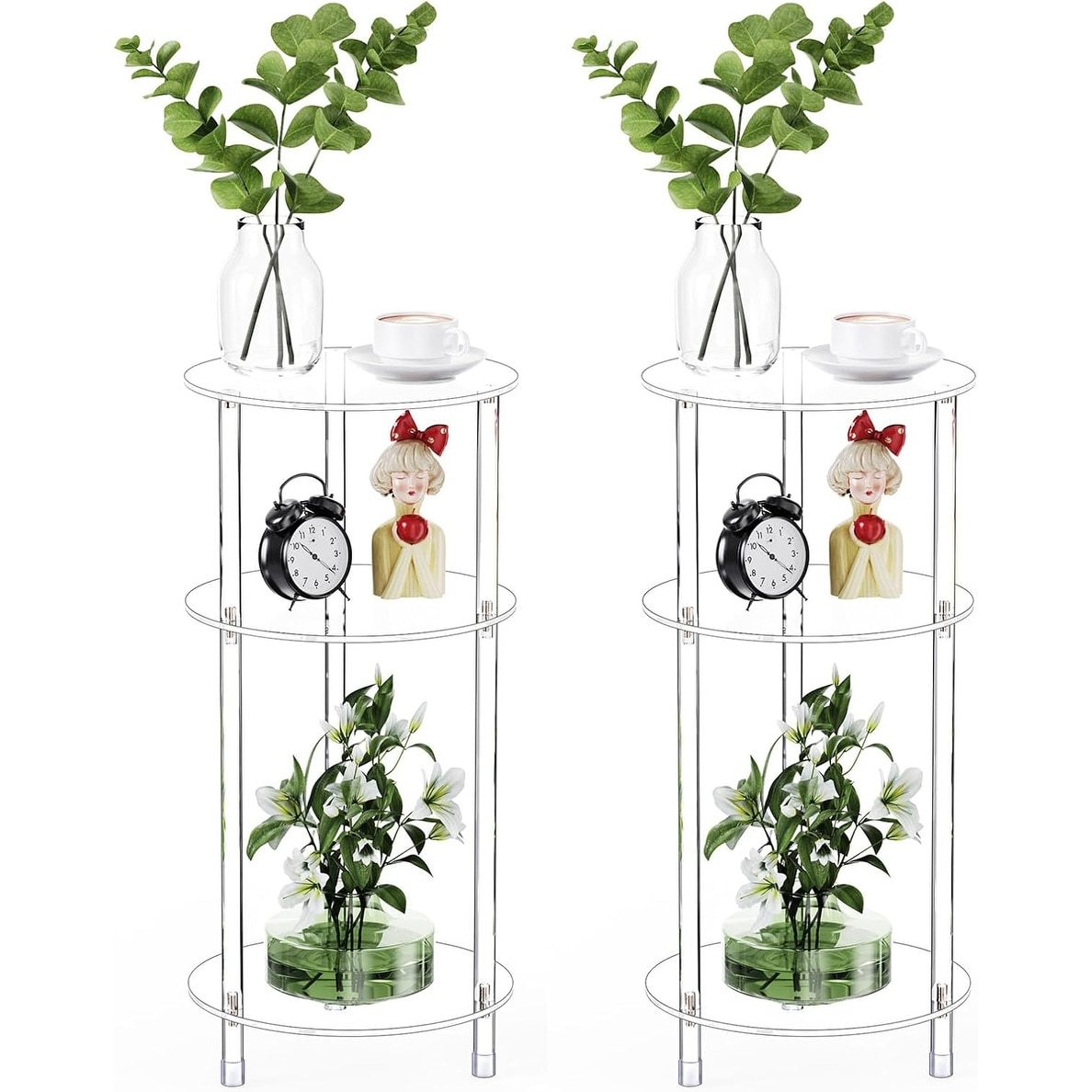 3-Tier Clear Round Acrylic Side Table Set of 2, Small Space End Table for Living Room, Bedroom, Bathroom