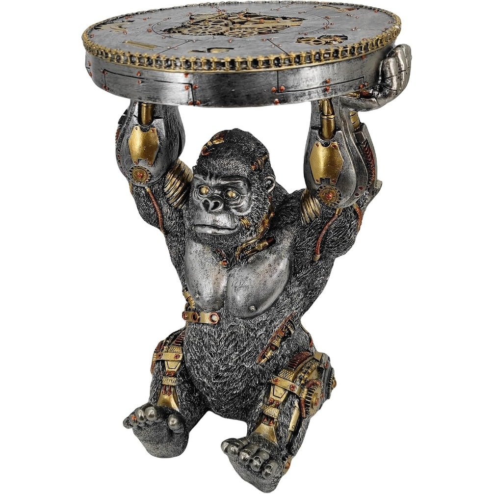 Steampunk Gorilla Side Table with Mechanical Artistry and Resin Construction