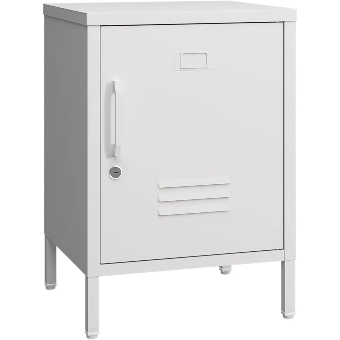 Modern Metal Nightstand with Adjustable Shelf & Lockable Storage, 15.8"W x 15"D x 22.5"H