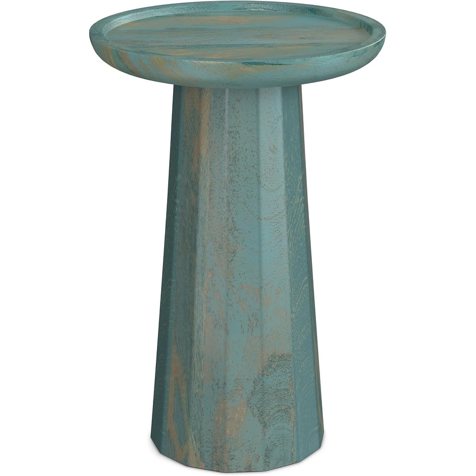 Contemporary Teal Wash Mango Wood Round Accent Table for Living Room and Bedroom