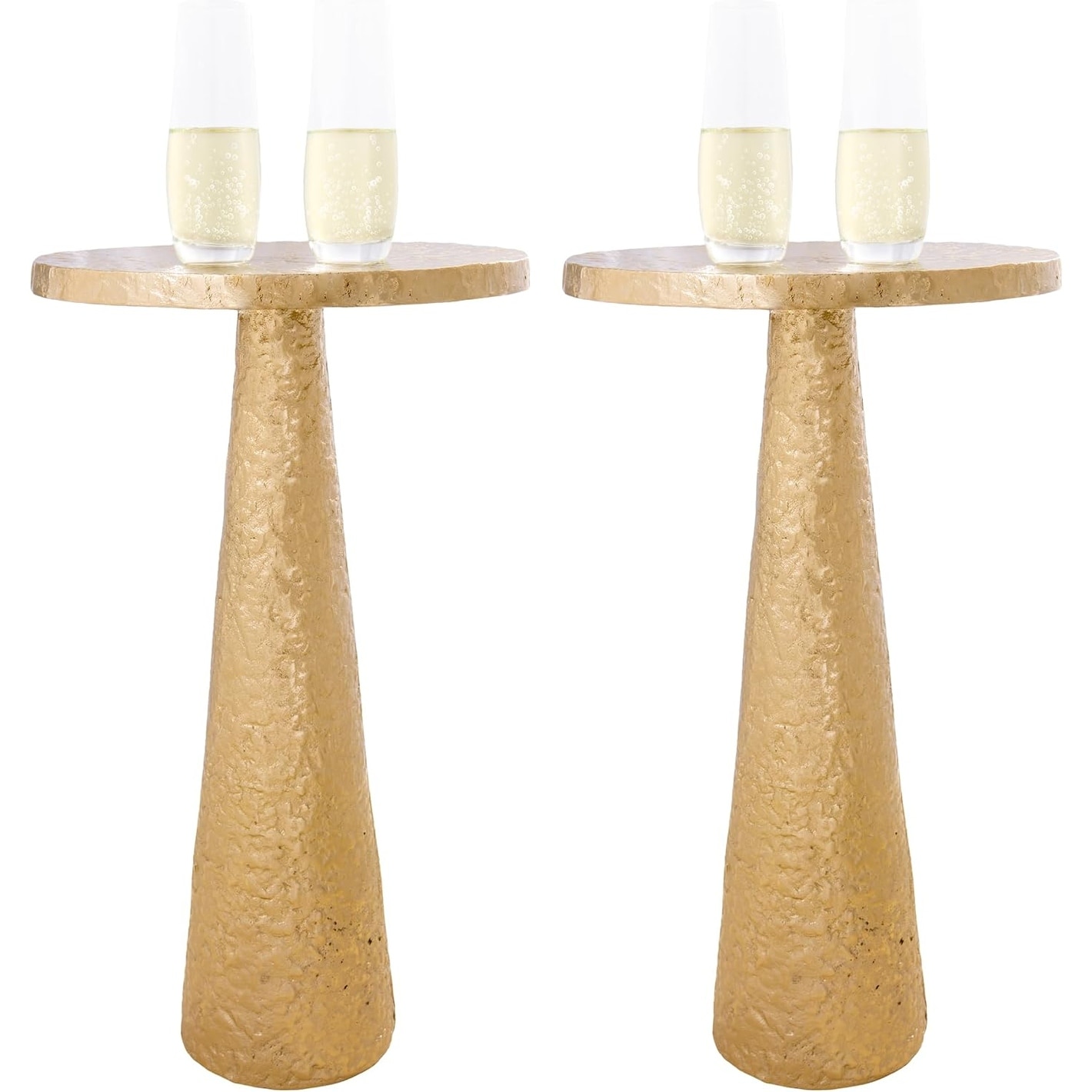 Set of 2 Small Round Gold End Tables, 21inch Height, Vintage Metal Accent for Living Room and Small Spaces