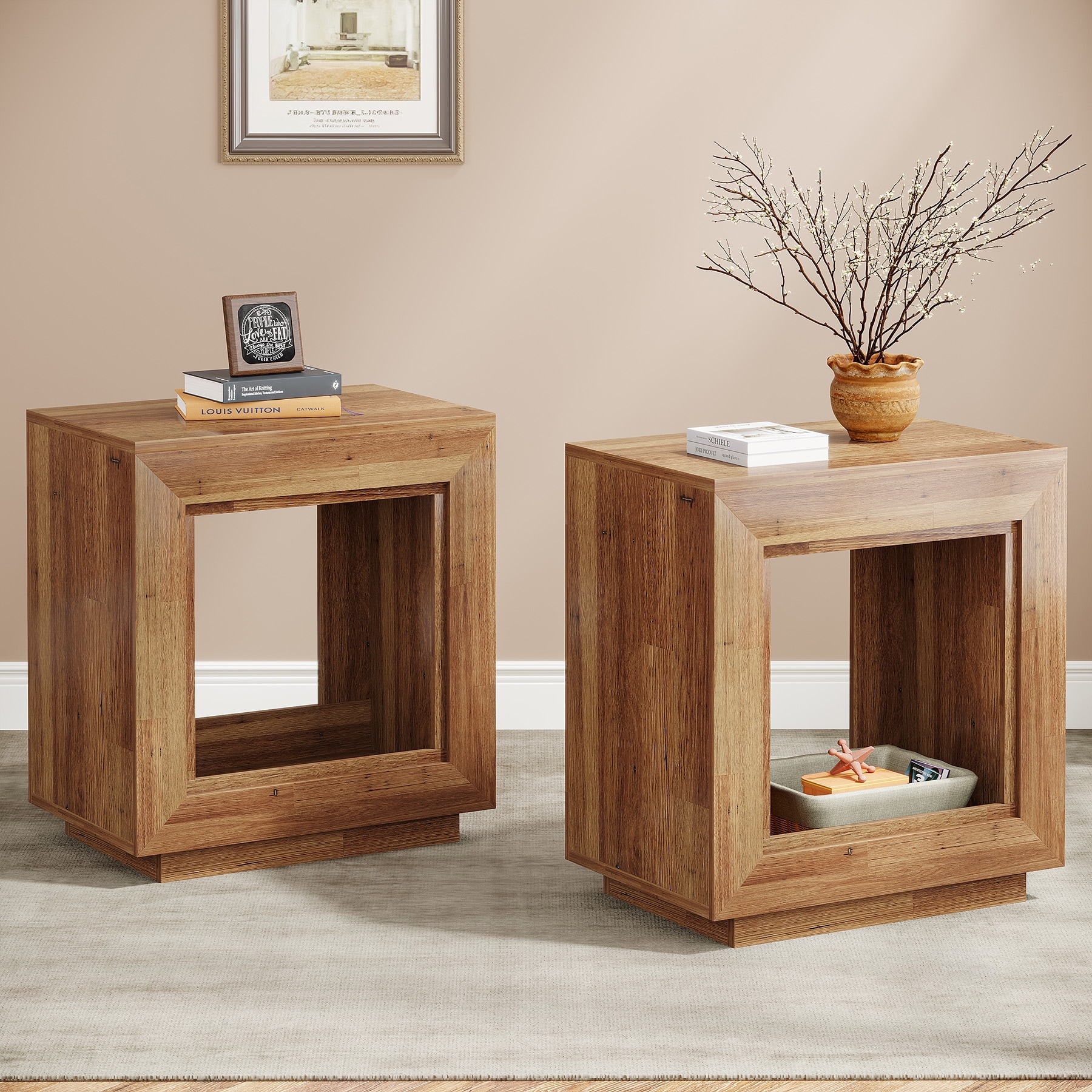 23.62-inch Rectangular Farmhouse Wood Side End Table for Living Room