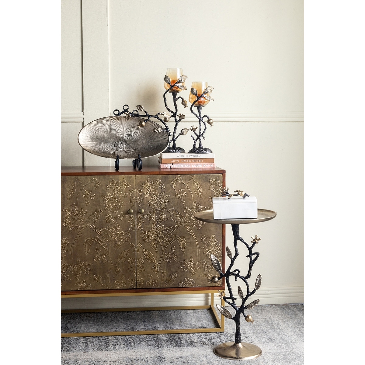 13.8x13.8x24" Aluminum End Table With Delicate Pomegranate Design