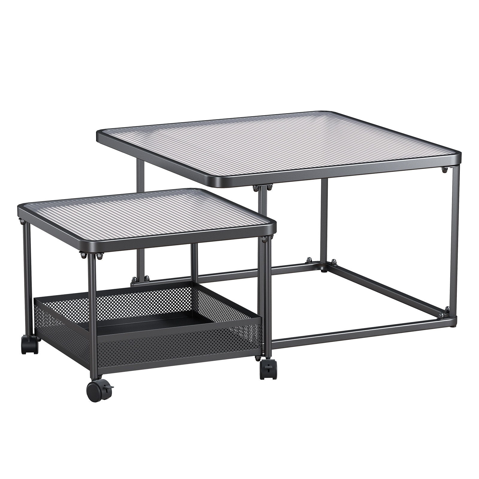 Meyreso Black Square Tempered Glass Nesting Coffee Tables with Metal Frame
