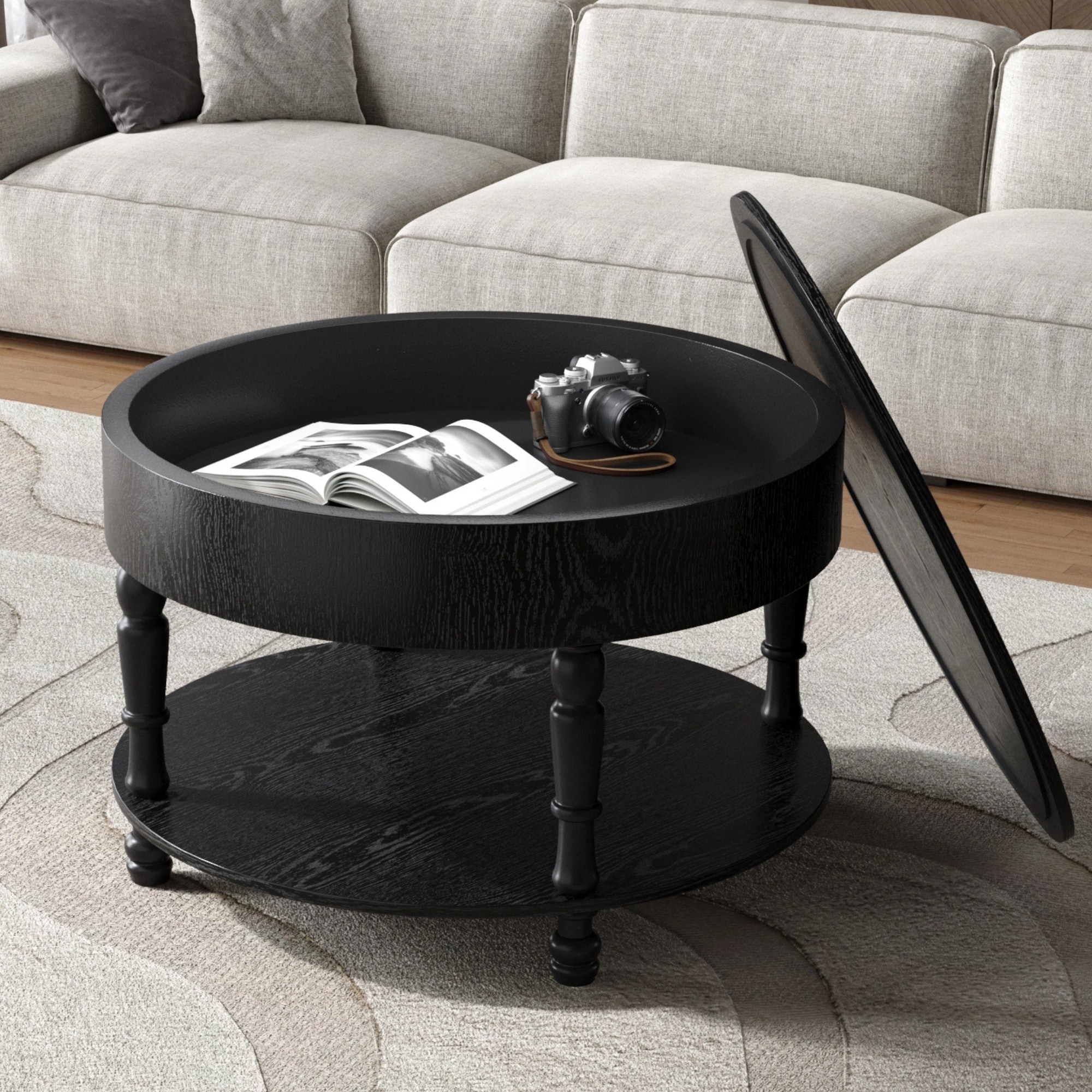 Coffee Table with Dual Storage for Living Room, 31.5" Modern Round Coffee Table with Storage and Hidden Compartment