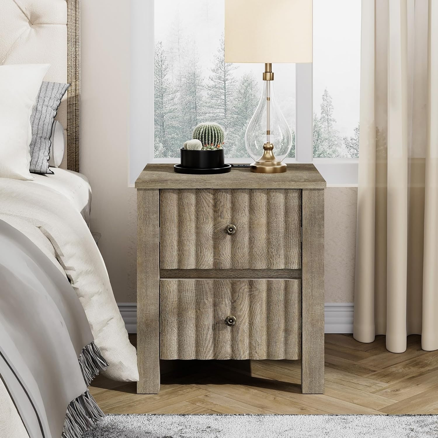24 Inch Modern Farmhouse Side Table, Fully Assembled, Poplar Solid Wood