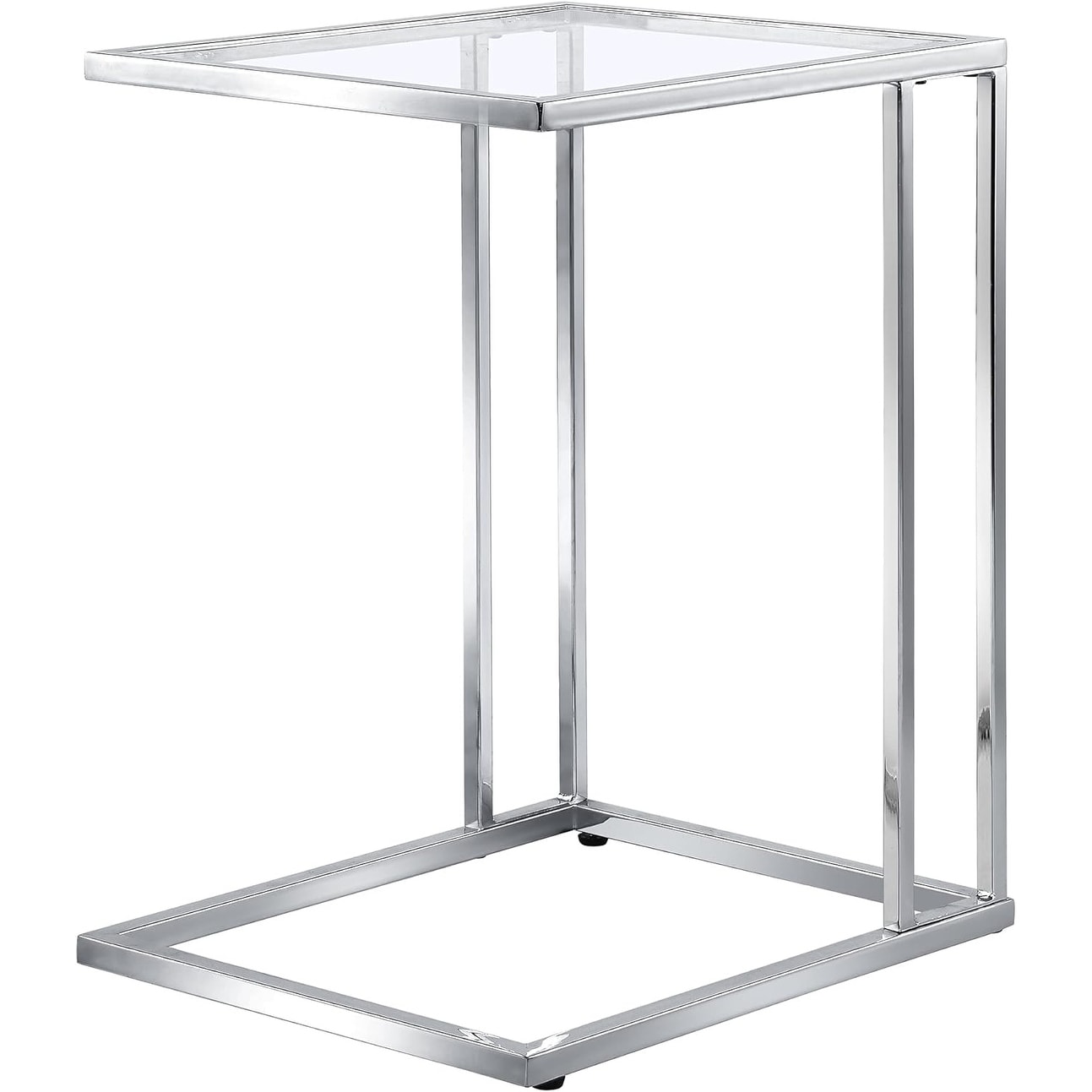 Modern C-Shaped End Table with Chrome Metal Base & Tempered Glass Top - Space-Saving Side Table for Living Room, Office