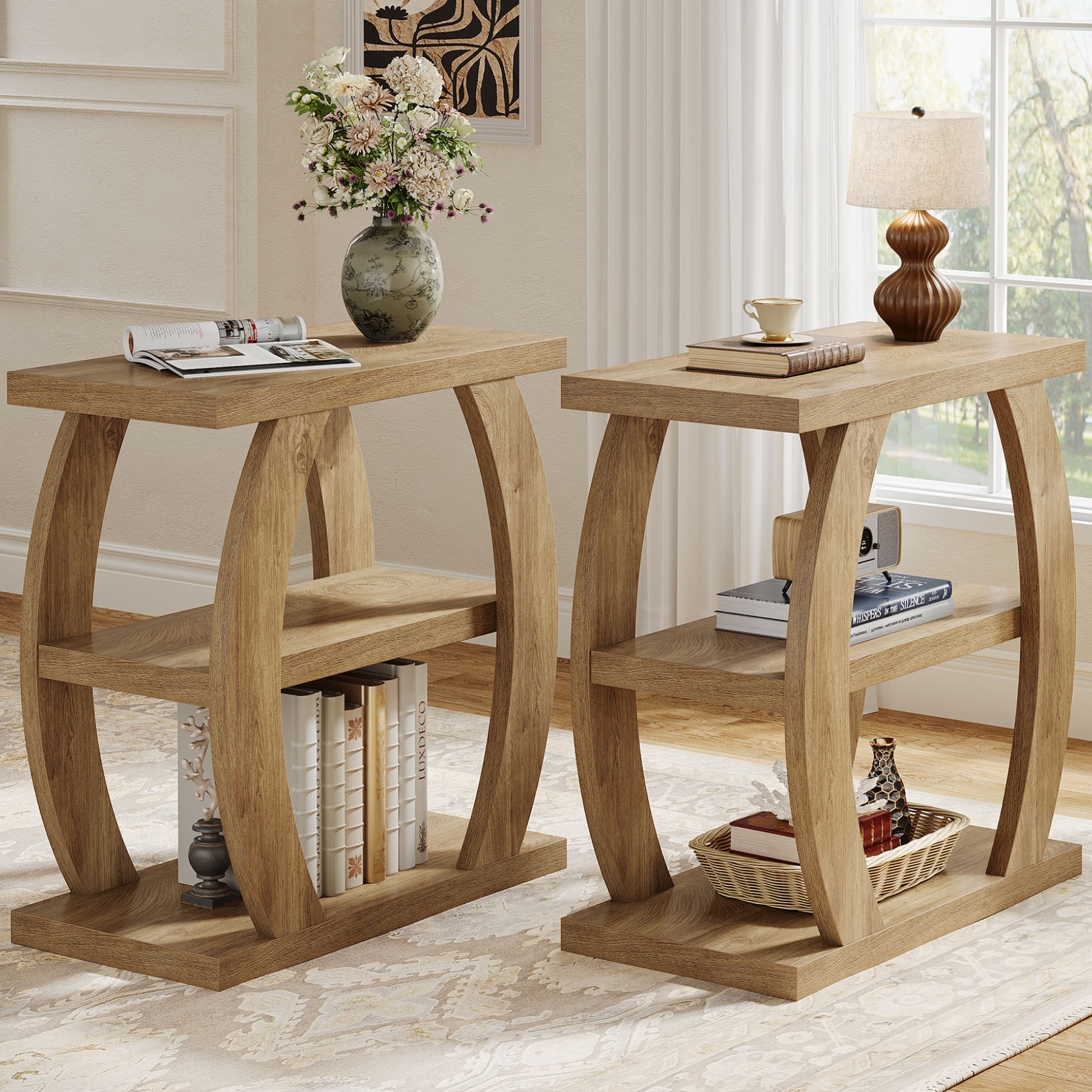 2 Drawer End Table with Shelf Beveled Top Two Smooth Gliding Drawers with Decorative Design Flared Legs Accent Table - 22