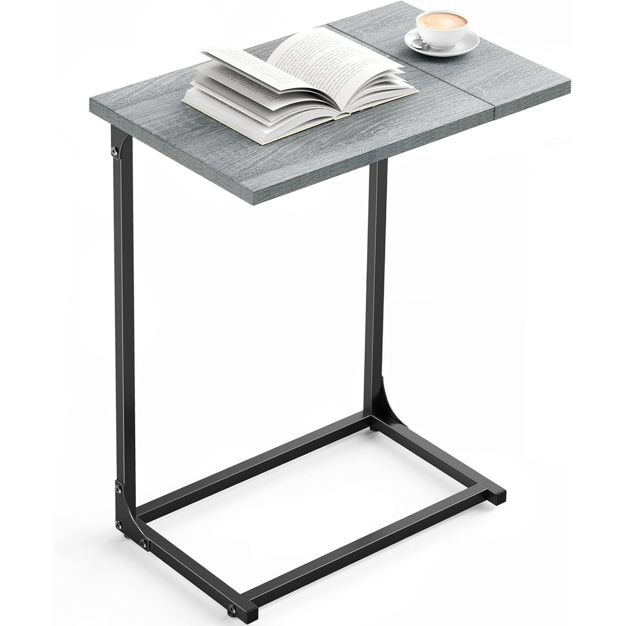 C-Shaped Sofa Side Table with Metal Frame, Large Surface End Table for Living Room, Bedroom & Home Office, Rustic Design