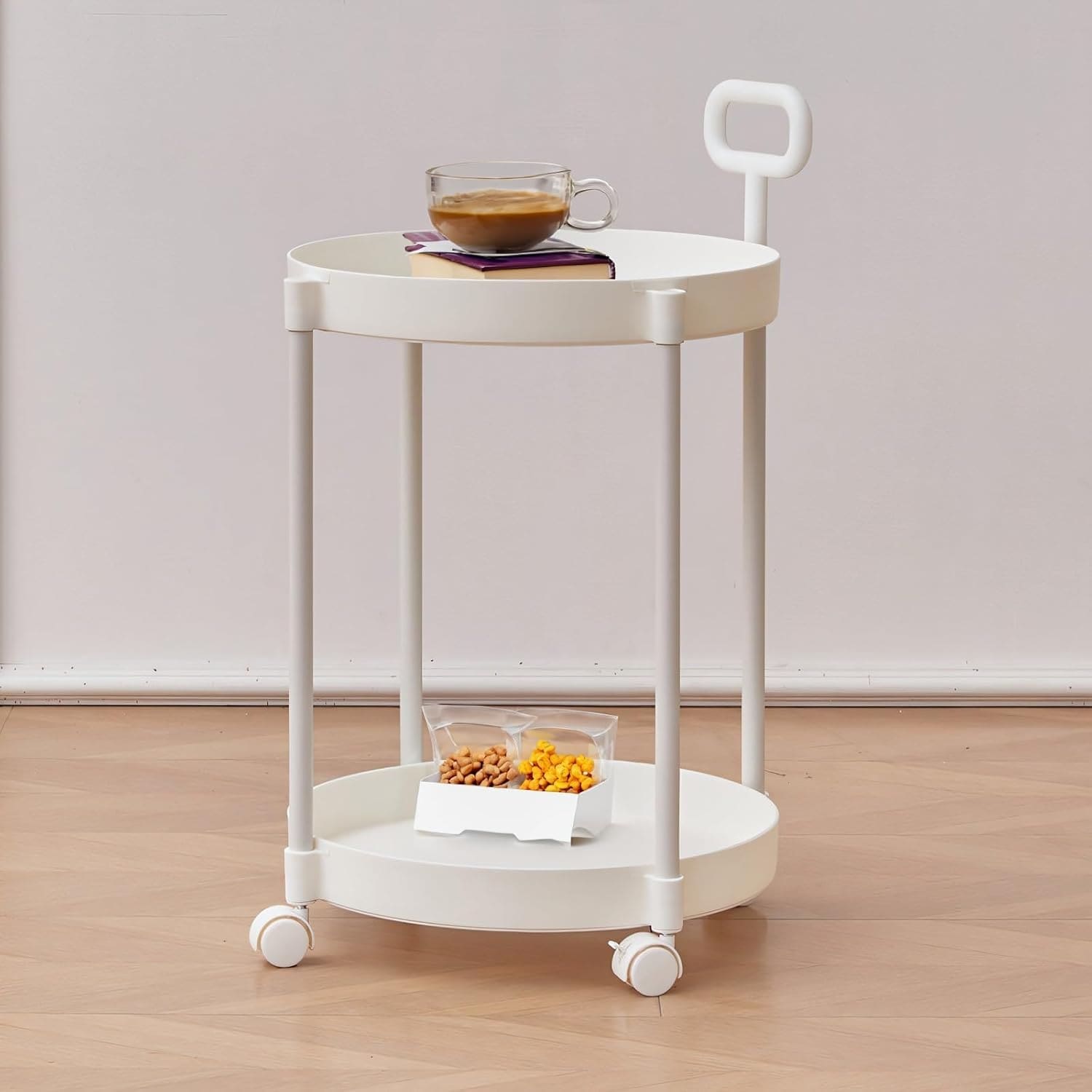 Mobile 2-Tier Side Table with Wheels and Handle, Kid-Friendly Design, Easy Assembly, White