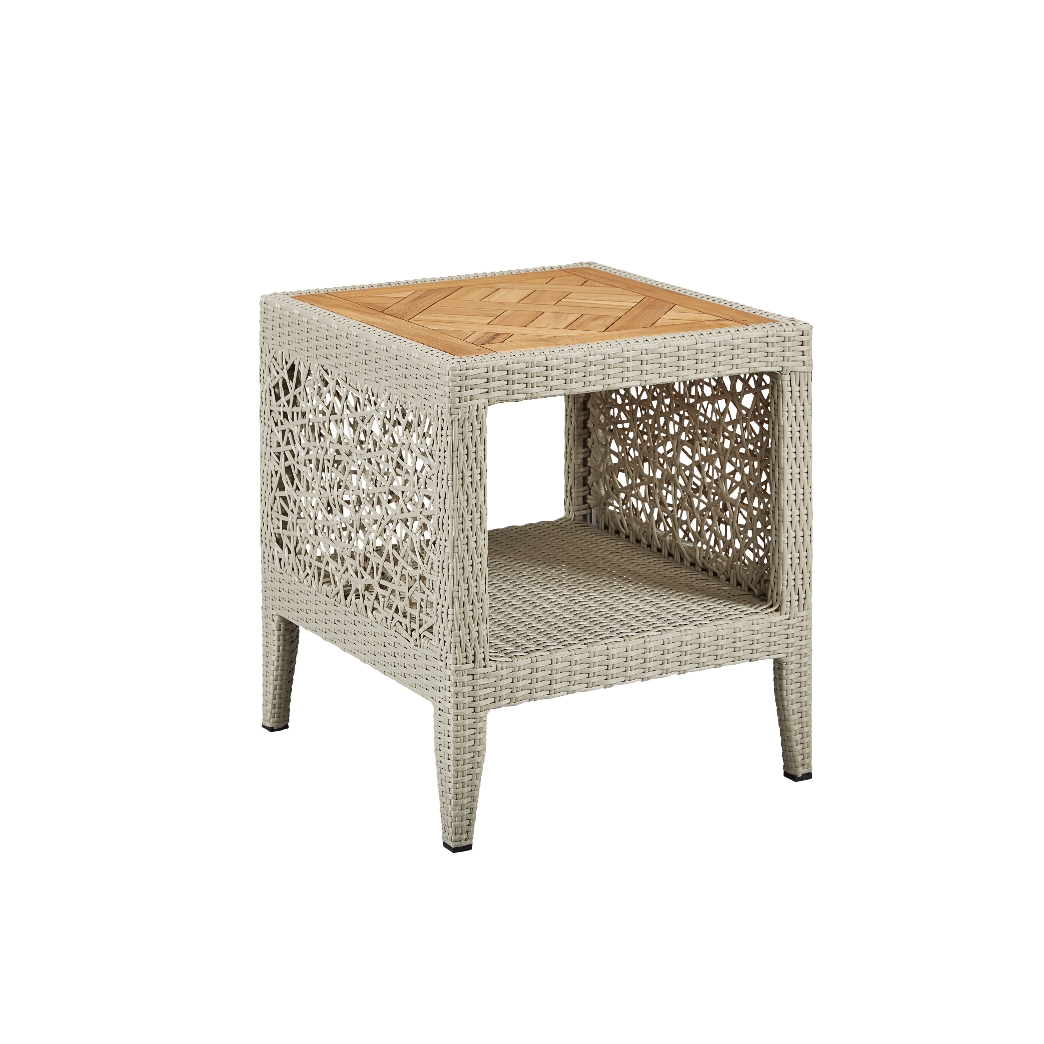 Haven Outdoor Patio Accent End Table with Teak Top & Resin Body