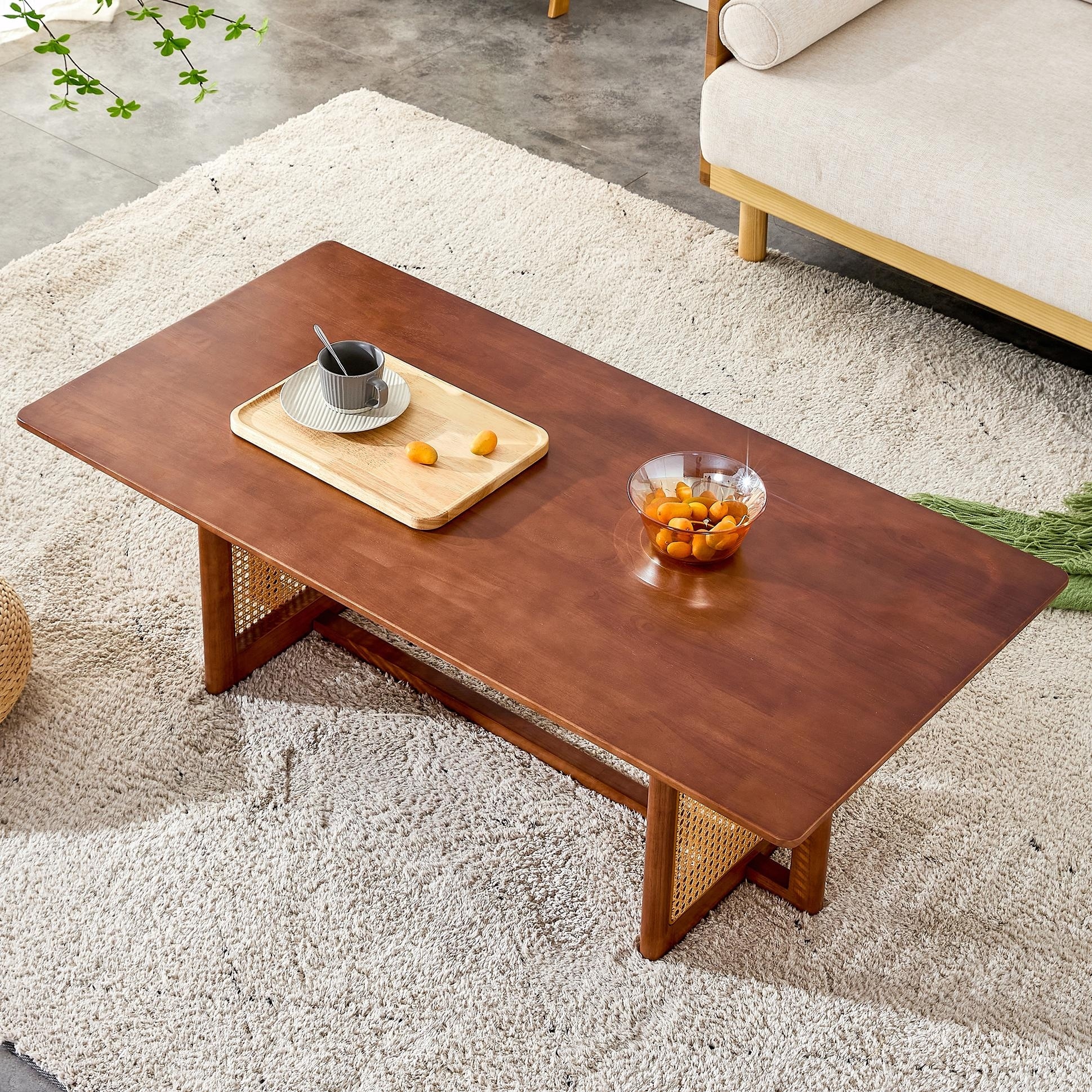 Chinese Style Rattan Coffee Table - Walnut Rectangular Low Table
