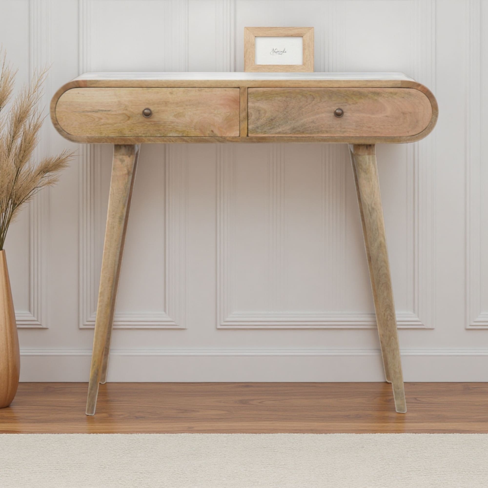 35.4" Solid Mango Wood Curved Console Table with 2 Drawers & Nordic Legs