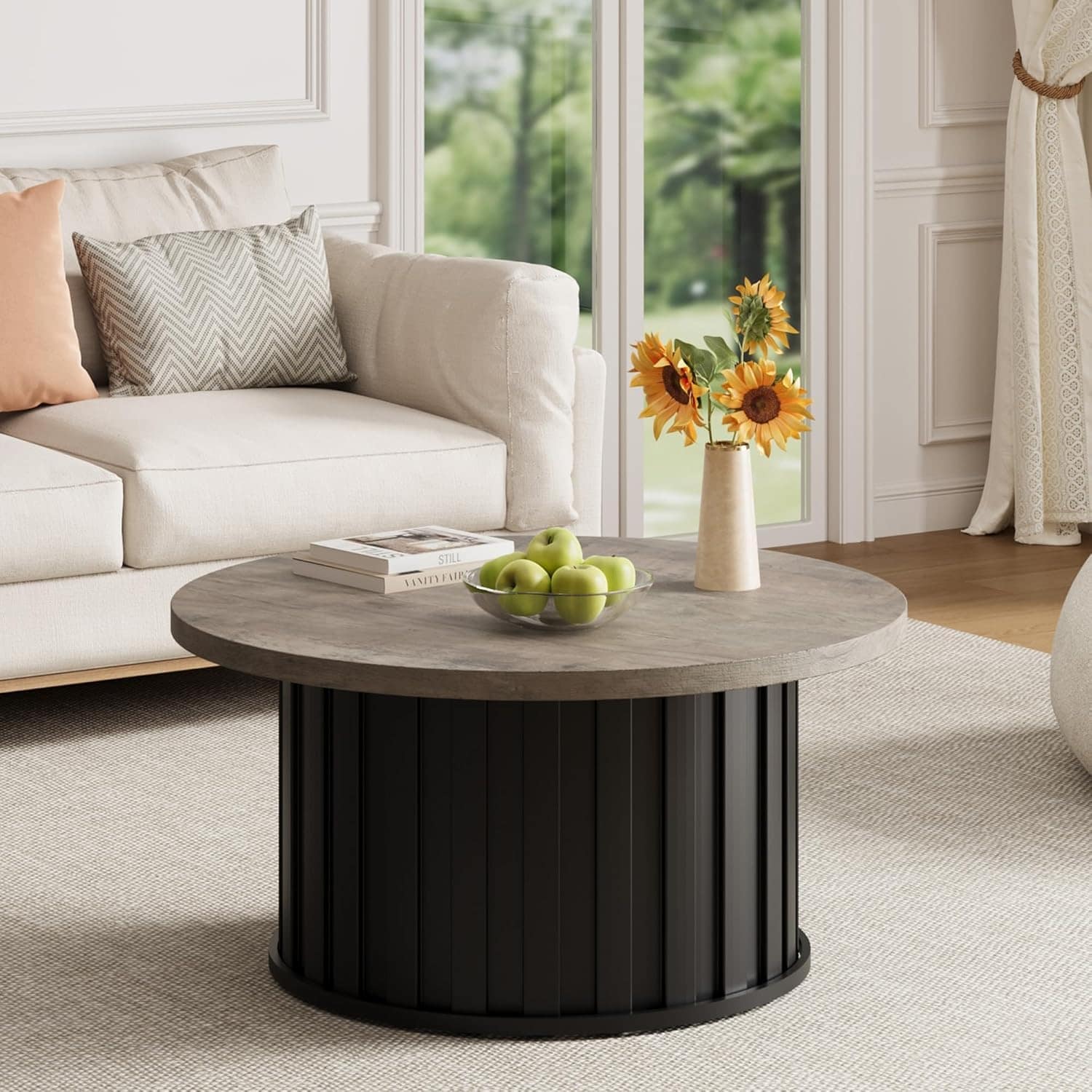 Round Coffee Table, Mid Century Modern Coffee Table with Metal Base