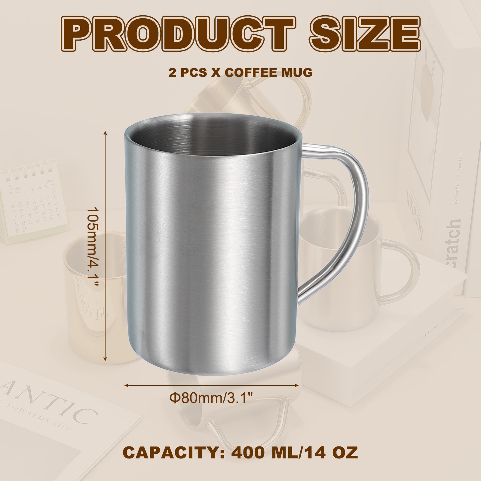Metal Coffee Mugs, Metal Double Walled Mugs with Handles - Silver
