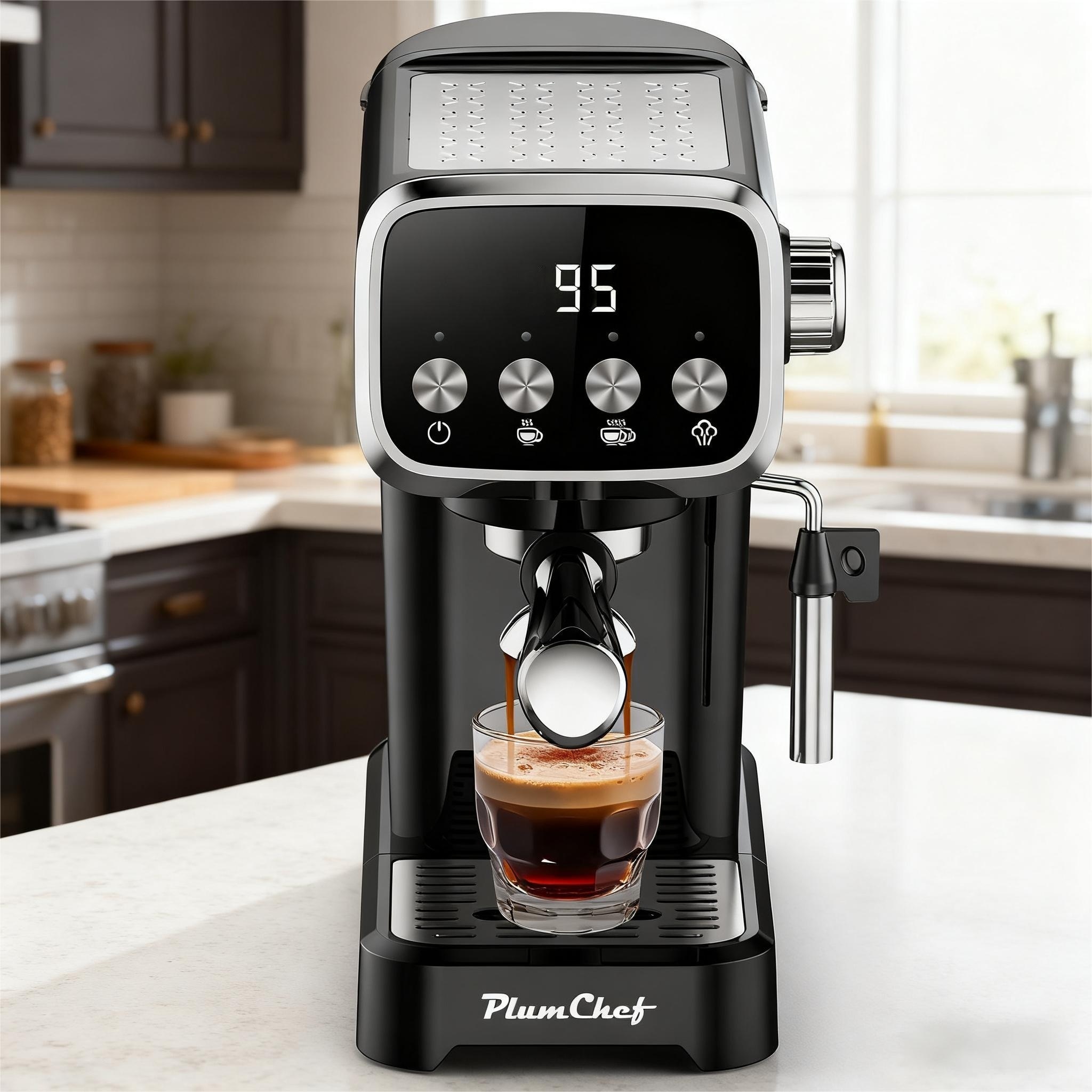 Espresso Coffee Machine, Espresso Maker with Milk Steamer - 12.4"D x 12.5"W x 13.5"H