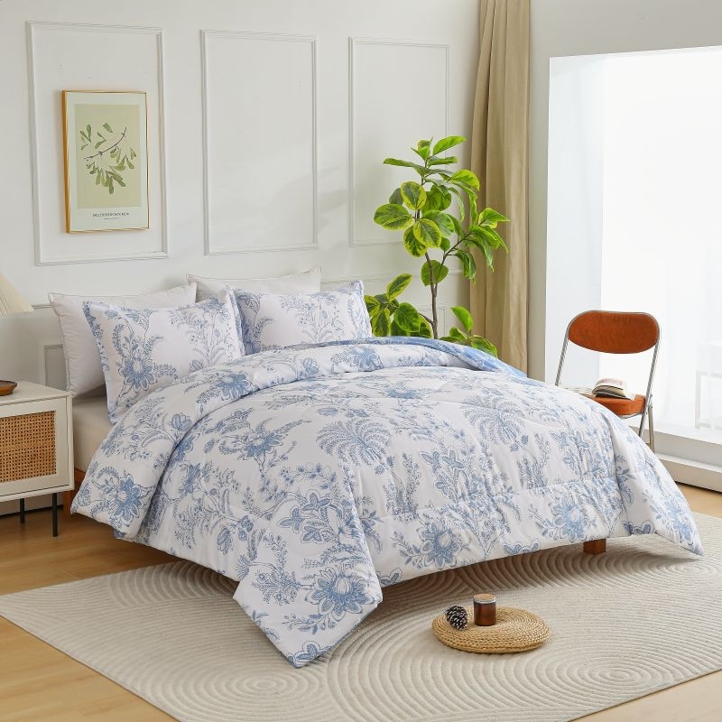 Little White Floral in Blue 100% Cotton Reversible Comforter Set